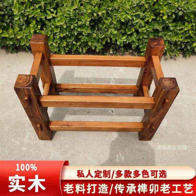 定做实木木架底座石槽石桌桌脚鱼缸茶几防腐老头槐木榆木支架摆件