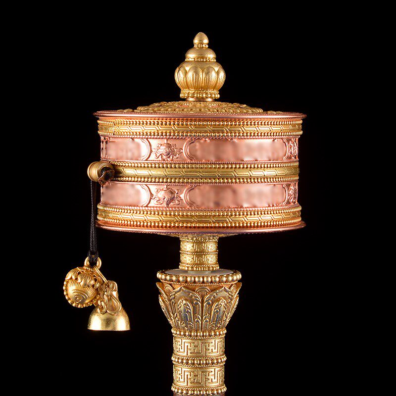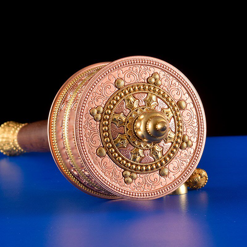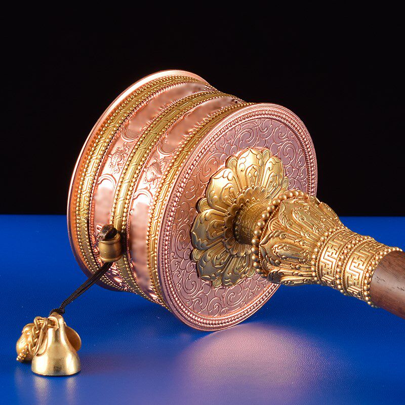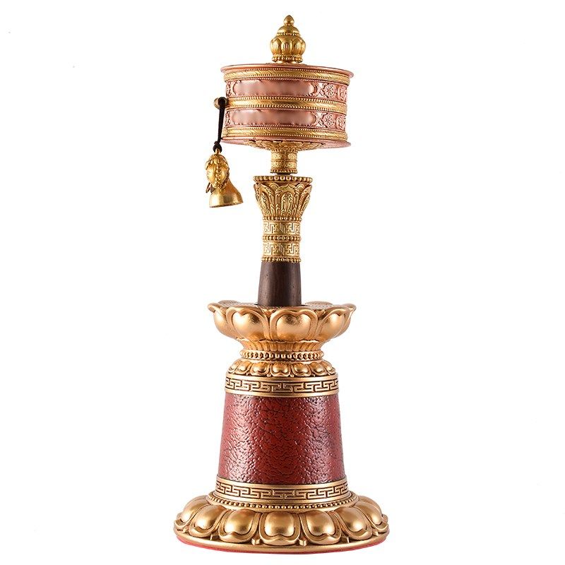 手摇转筒底座西藏族民族黄铜家用红铜转轮八吉祥大小号双轴承摆件