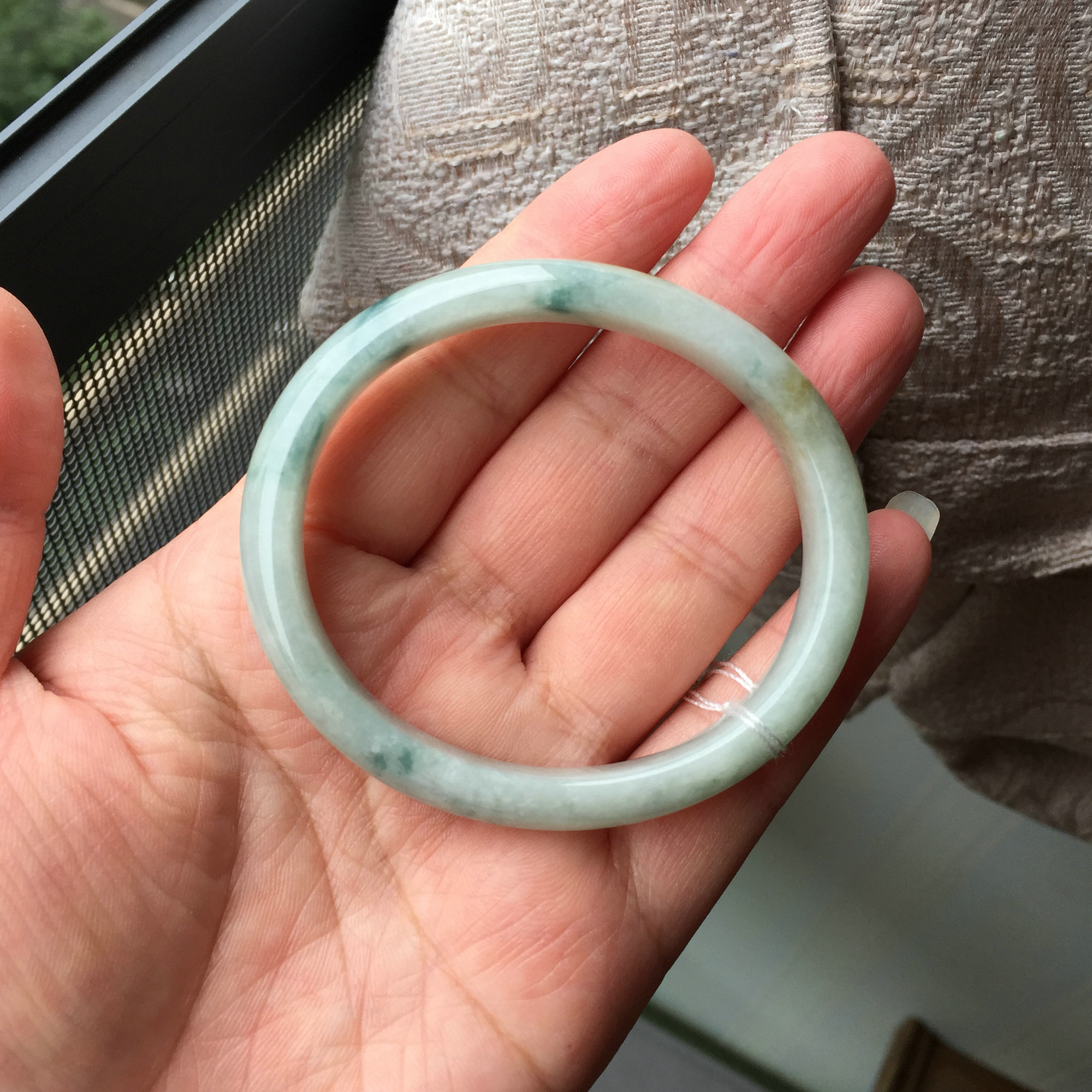 圈口约54.8x48.6mm天然A货缅甸料翡翠糯底飘花玉石贵妃手镯女款
