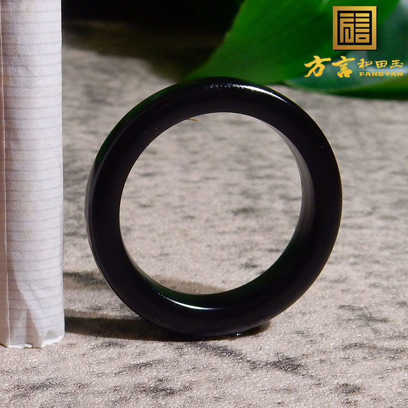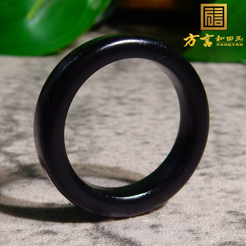 方言精品和田玉放漏墨玉细腻漆黑如墨精美扳指戒指19--21mm回馈O2