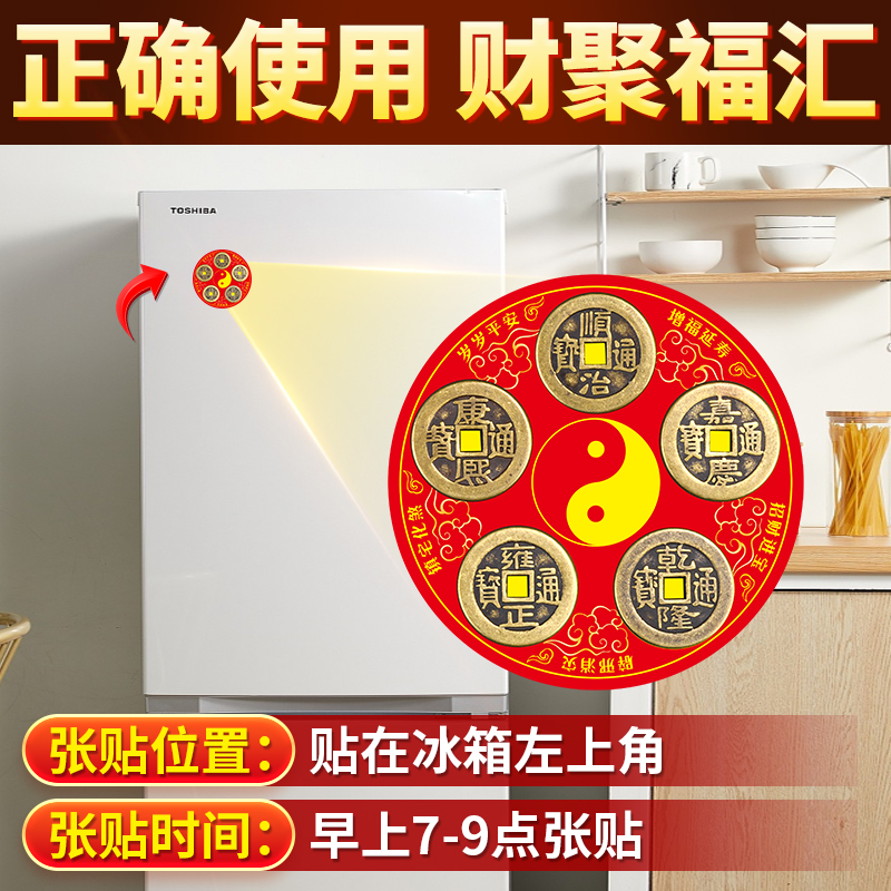 老师推荐五帝钱冰箱磁吸贴解决大门对门口厨房客厅卧室旺运生财贴