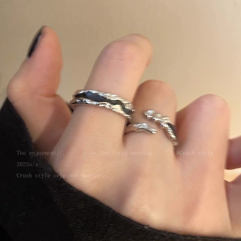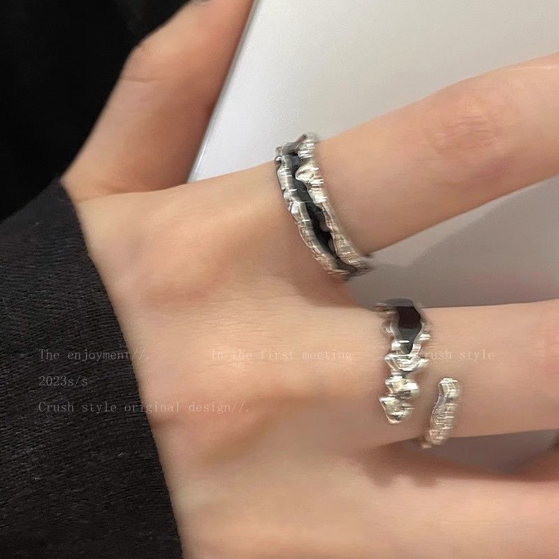 黑色滴釉开口戒指女夏ins小众高级感设计食指戒时尚个性酷潮指环