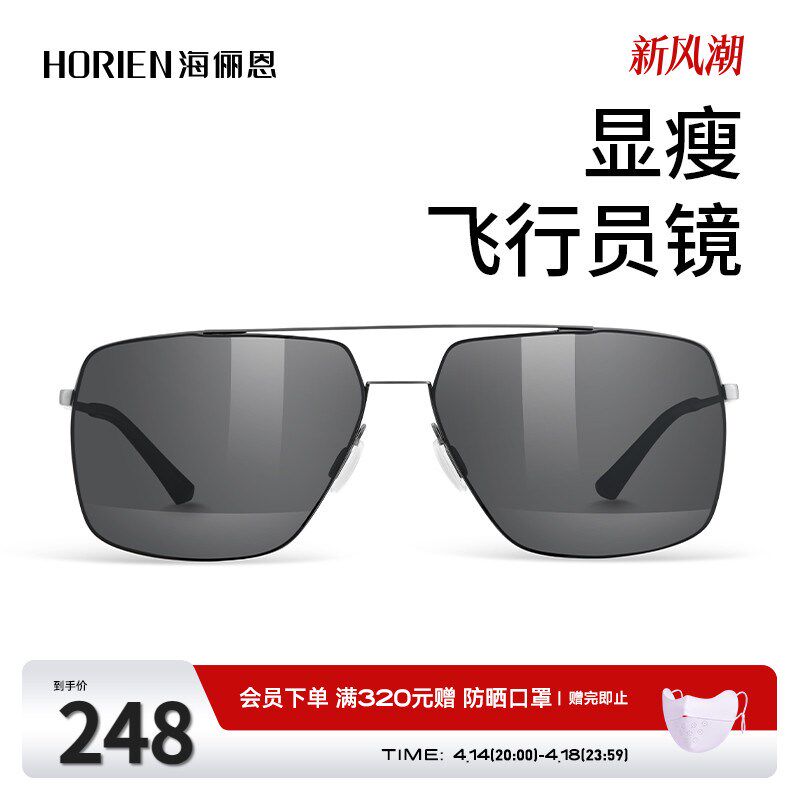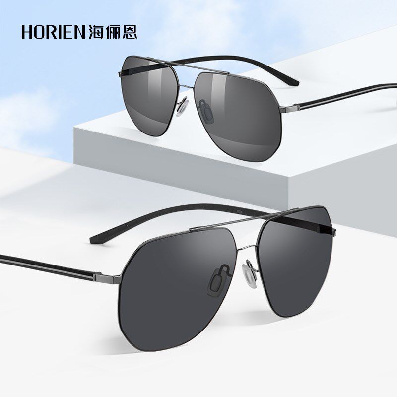 海俪恩深灰色墨镜防紫外线金属大框飞行员偏光镜男驾驶专用N6760