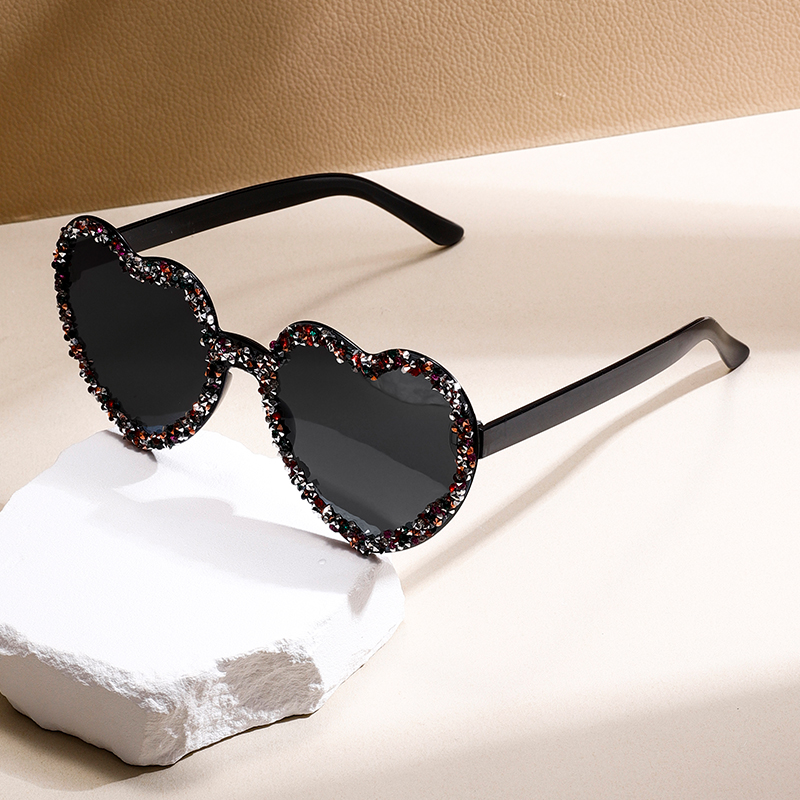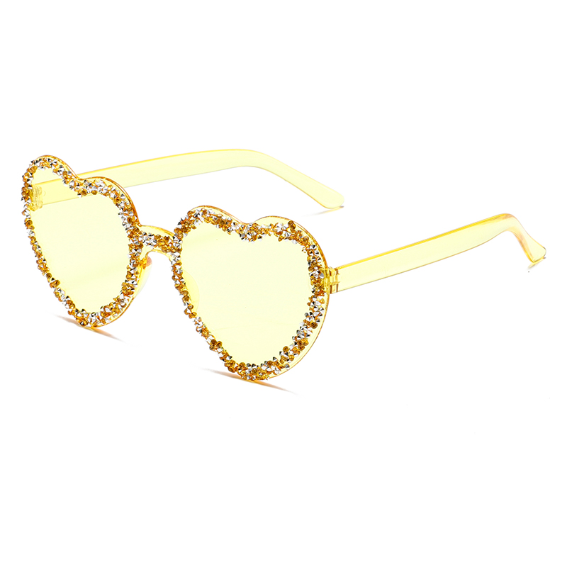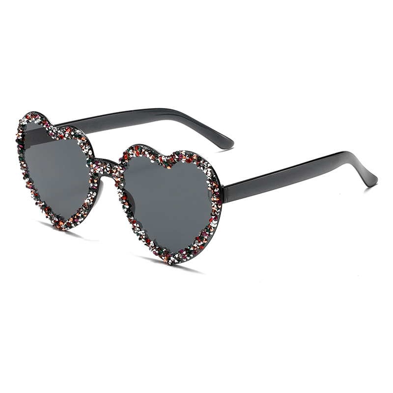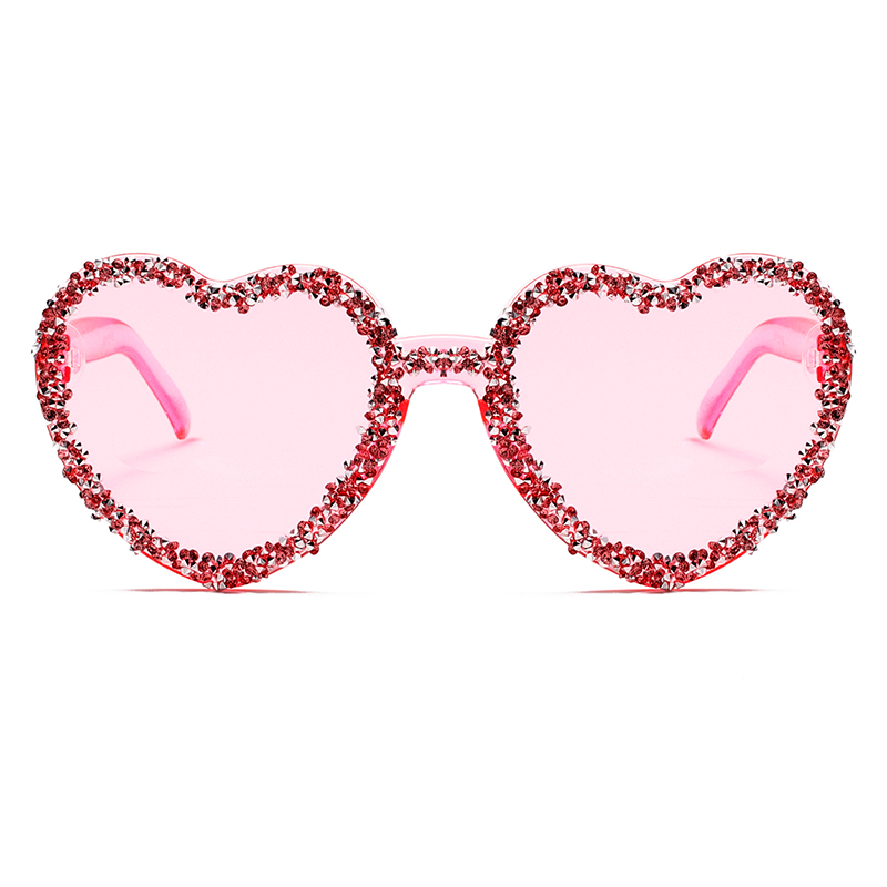 小红书时尚果冻色爱心形无框墨镜潮流镶钻舞会派对百搭太阳镜女