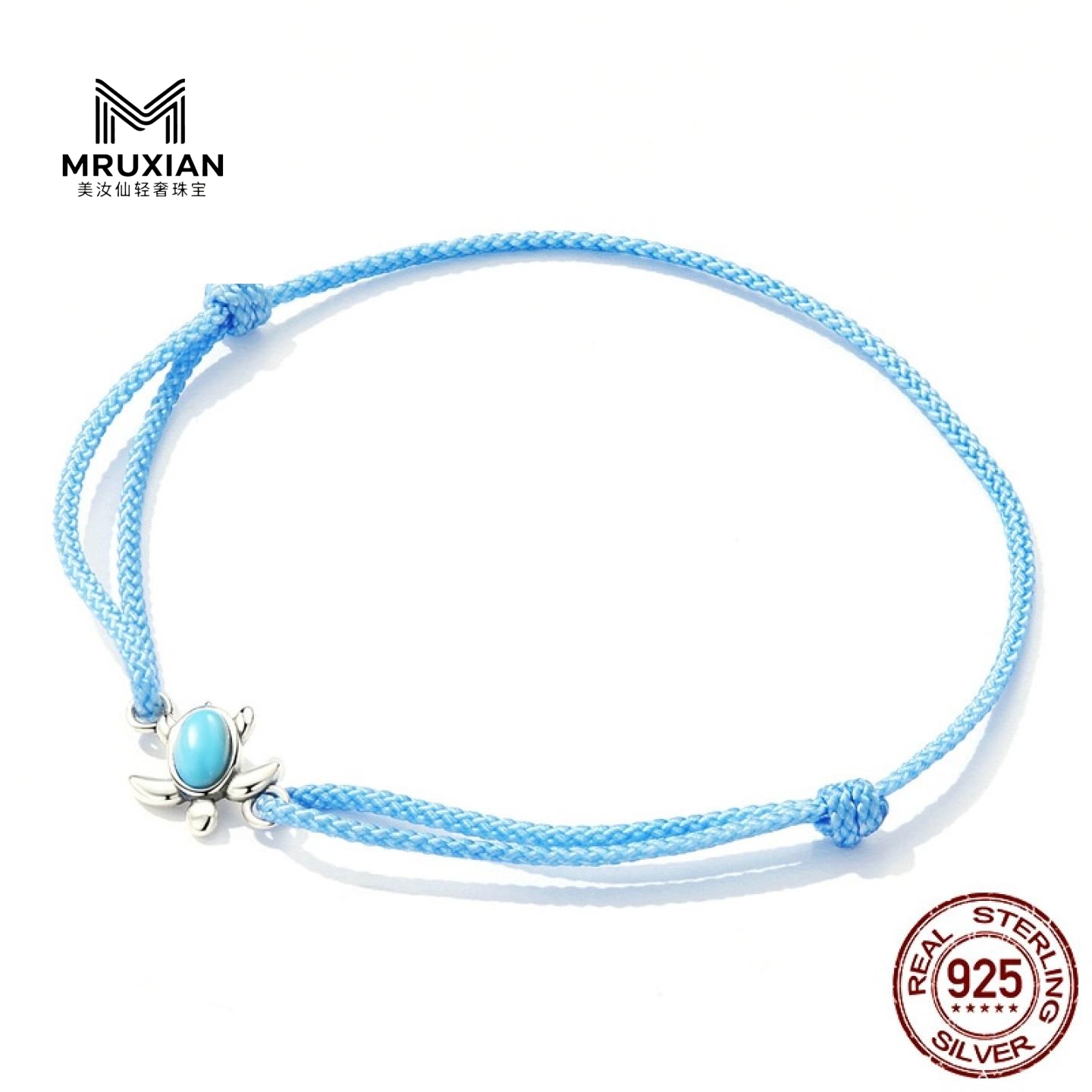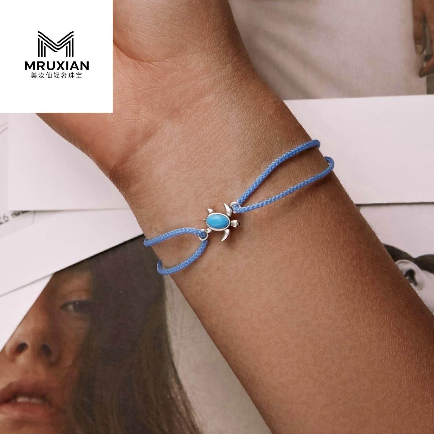 MRUXIAN 纯银蓝色海龟手链简约编制手绳松石海洋生物轻奢高级感原