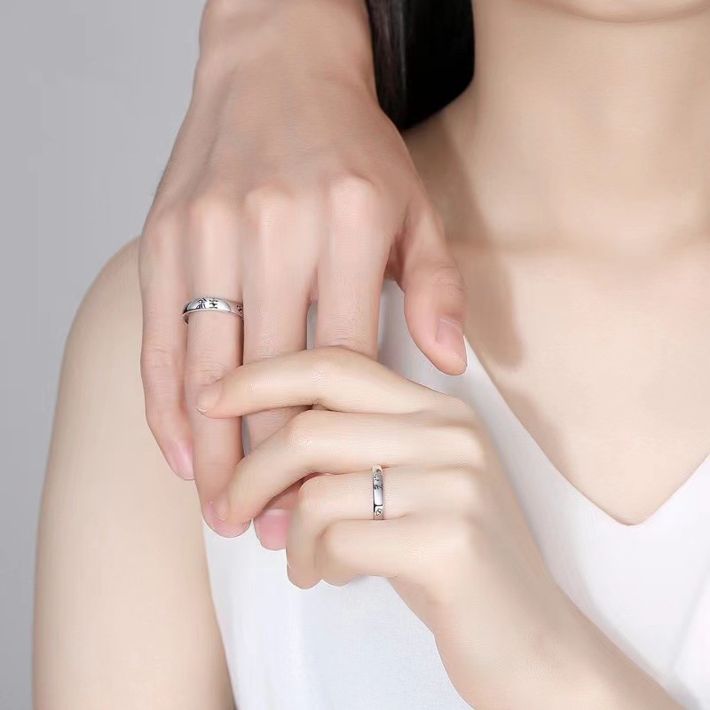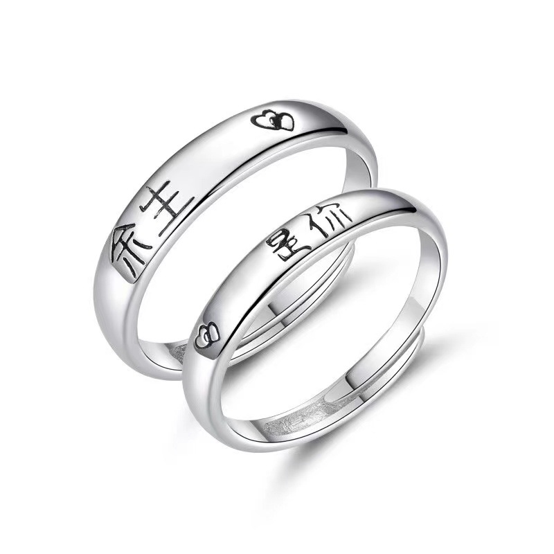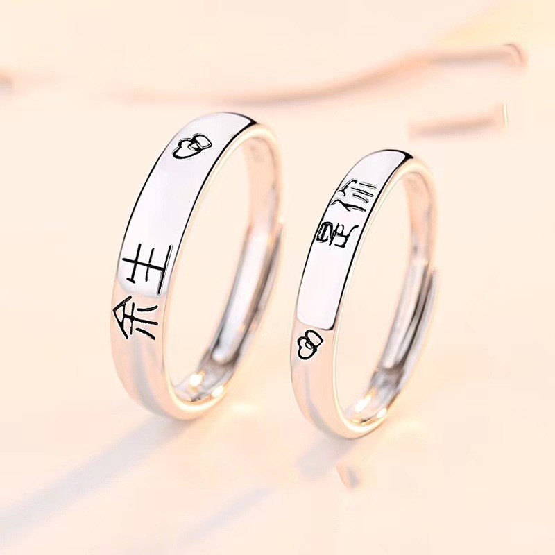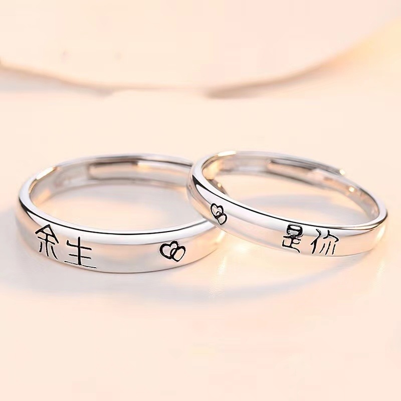 国风潮铜镀银手工饰品生日礼物余生是你泰银色情侣戒指个性礼物款