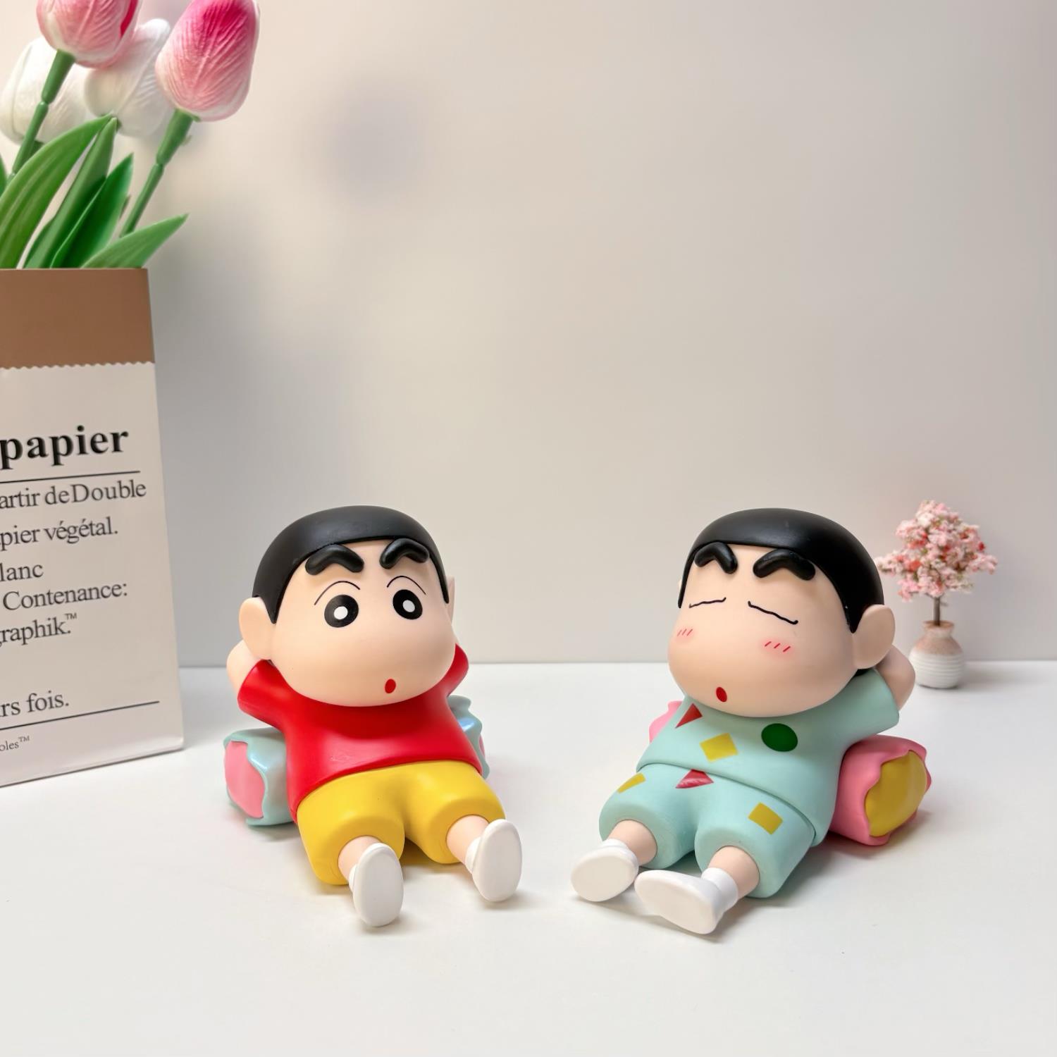 蜡笔小新懒人手机支架办公室桌面手办车载摆件公仔可爱潮玩礼物女