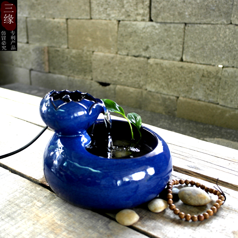小微型桌面流水器摆件水培绿色植物陶瓷小花盆小鱼缸宠物饮水器