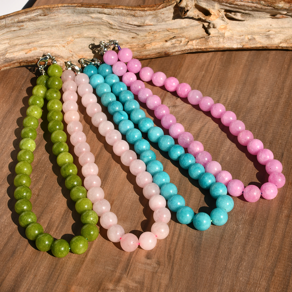 新款12MM圆珠石头项链新中式百搭叠戴串珠轻奢时尚高级感显白夸张
