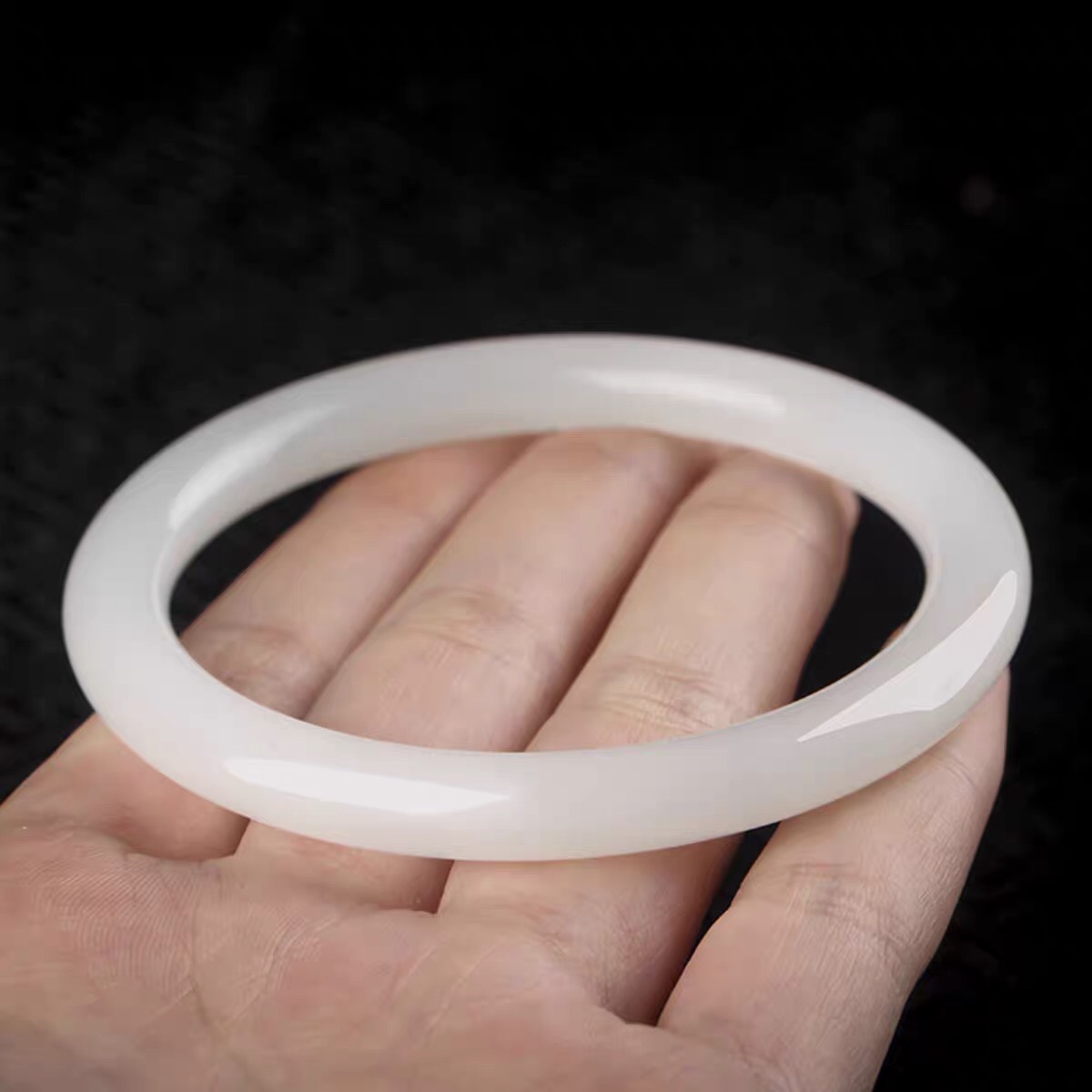 博萃缘正品新疆和田玉手镯白玉细条手镯羊脂玉白玉玉镯圆条带证书