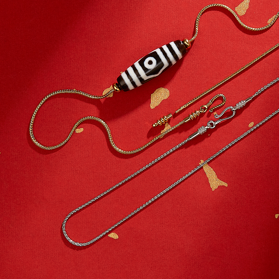 天珠项链男镀铂金蛇骨链挂绳高级横穿diy天珠锁骨链专用配绳