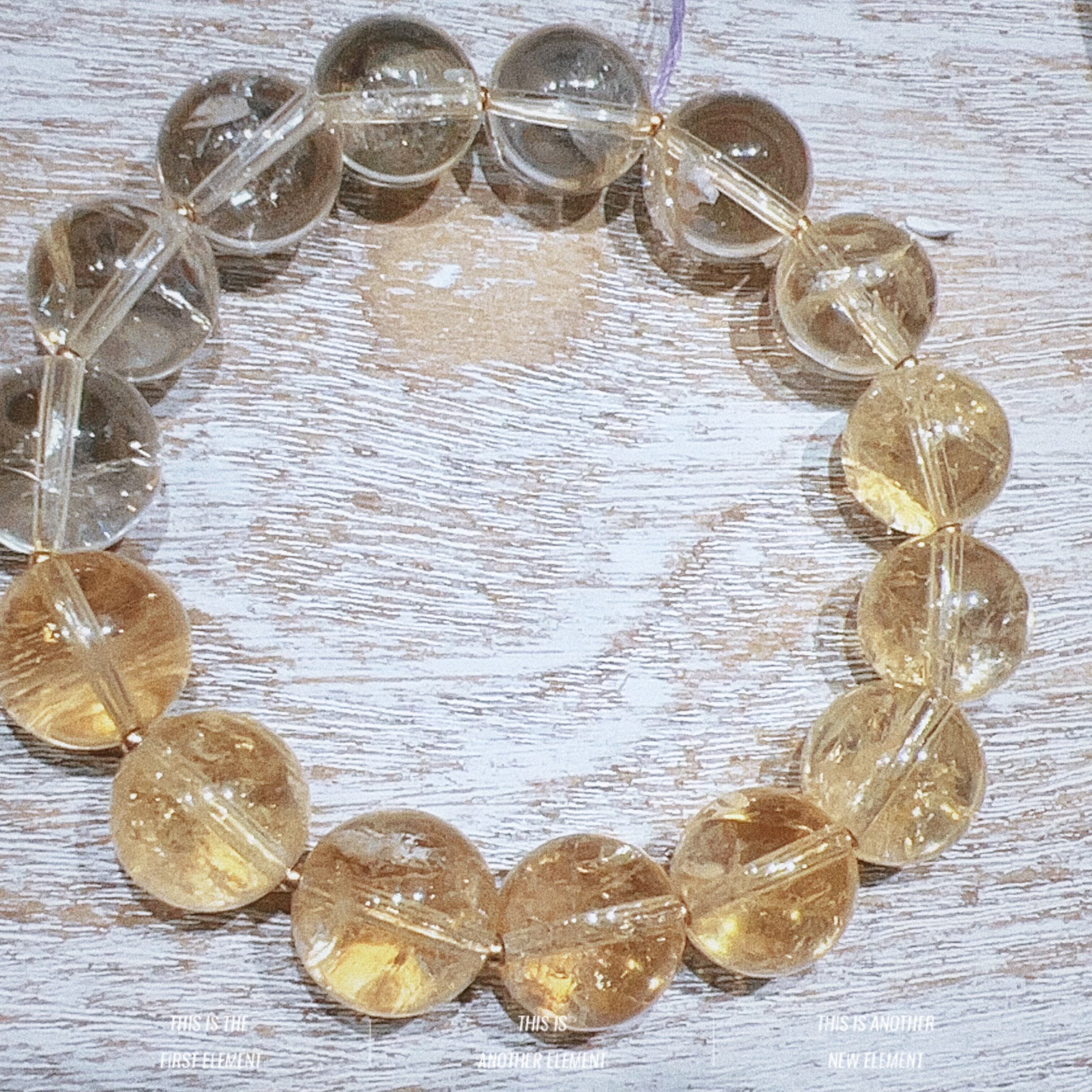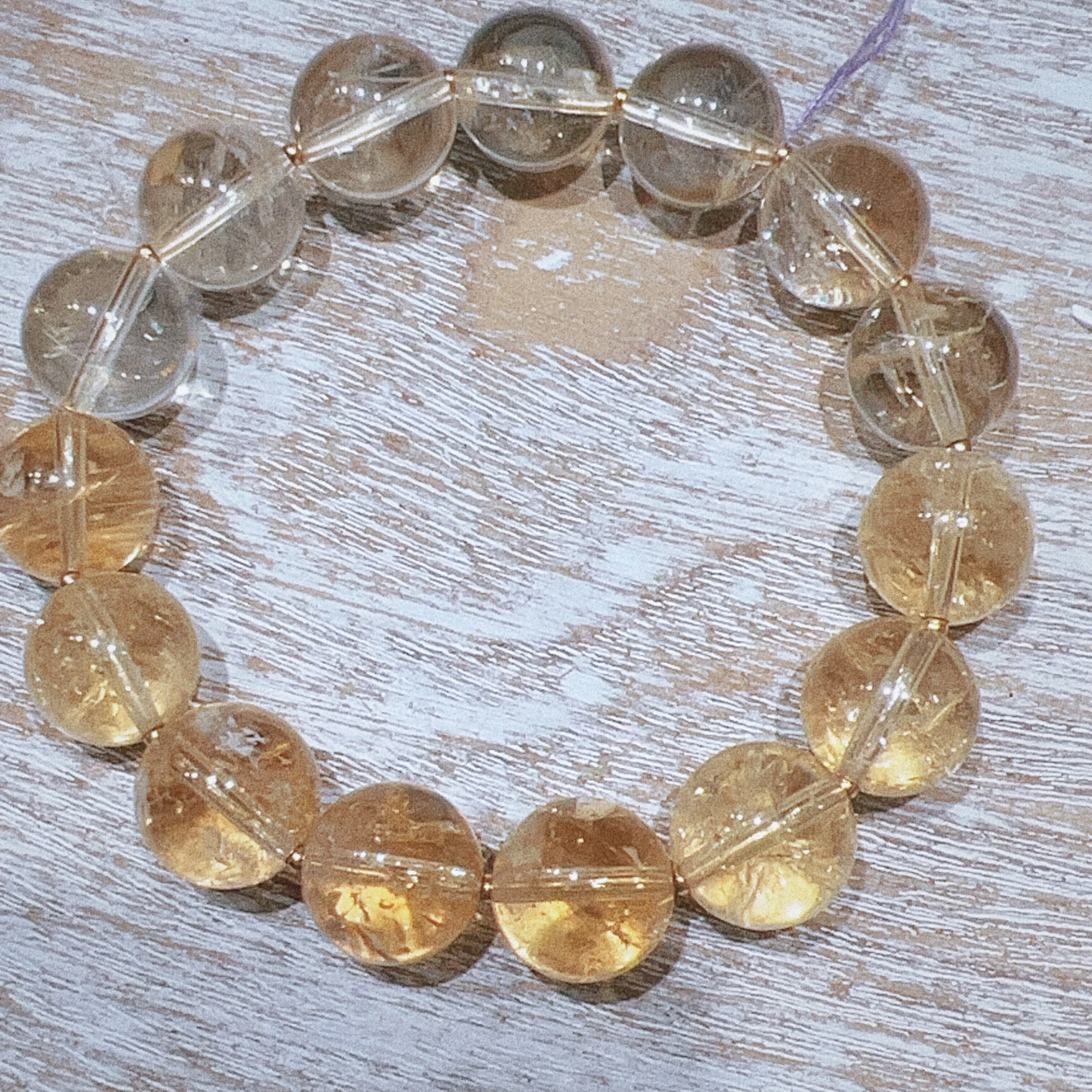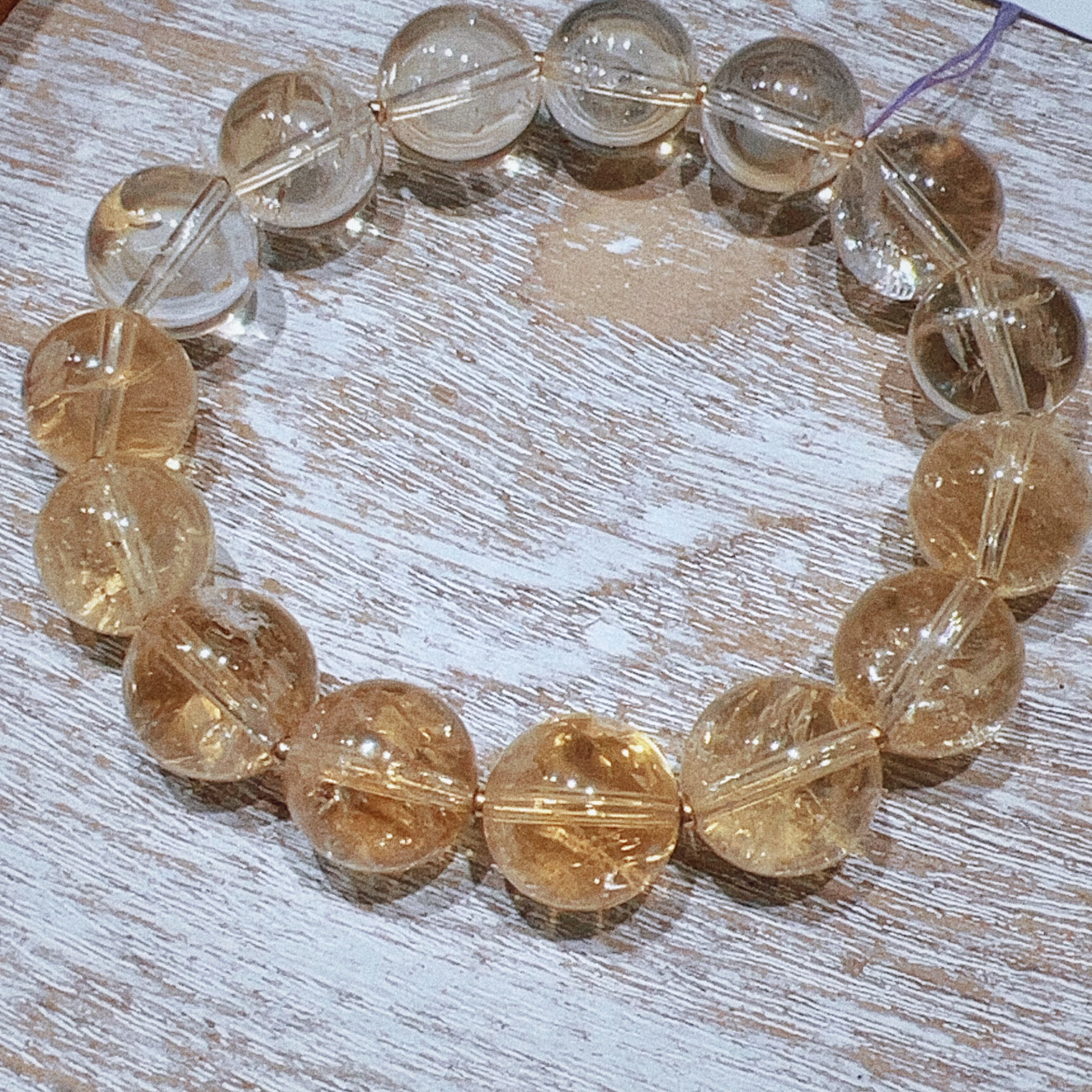 黄阿塞渐变色闪片黄水晶手串11mm单圈弹力绳女款手饰原创小众天然