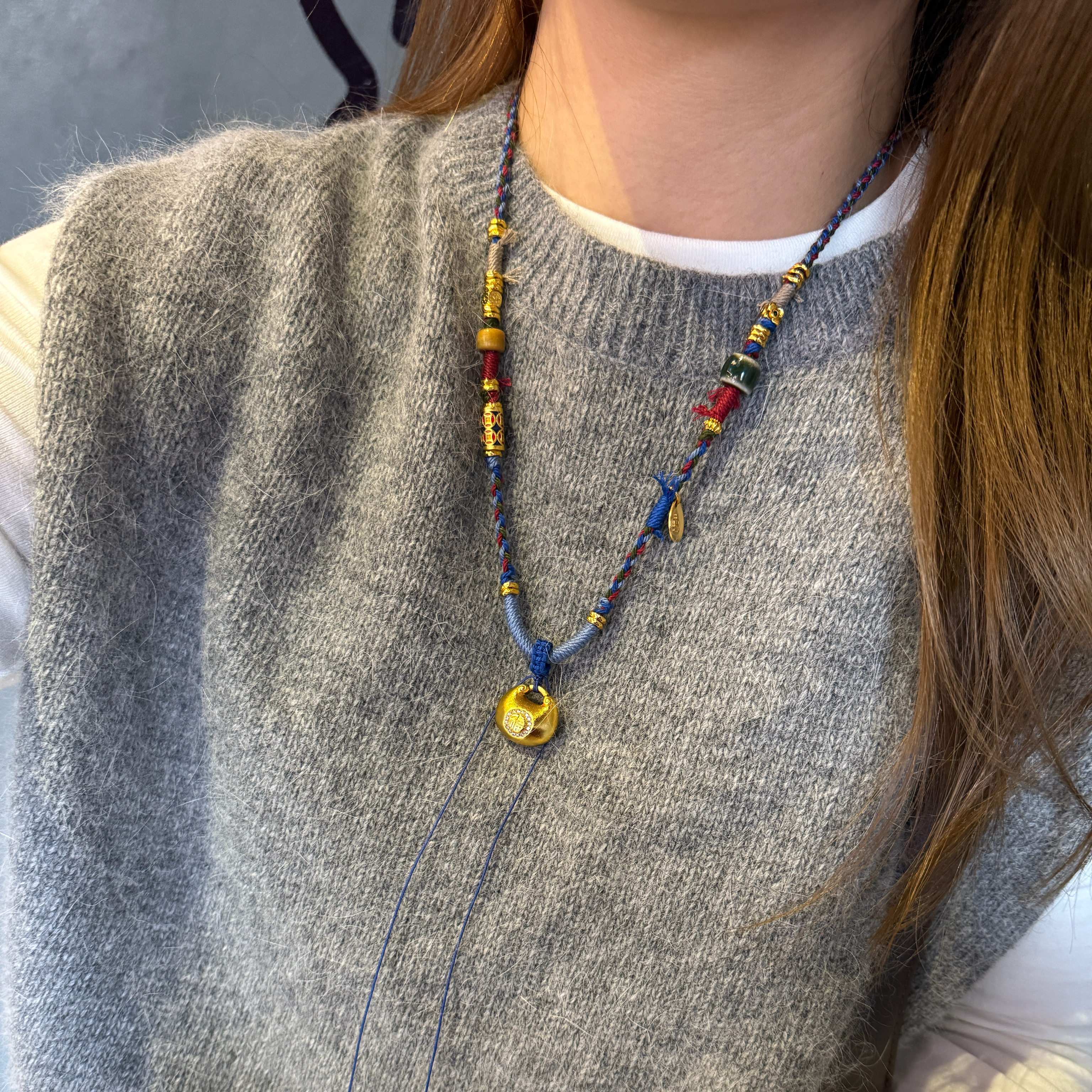 夫人手作 原创设计手工编织项链女款编绳黄金挂坠小胖福吊坠