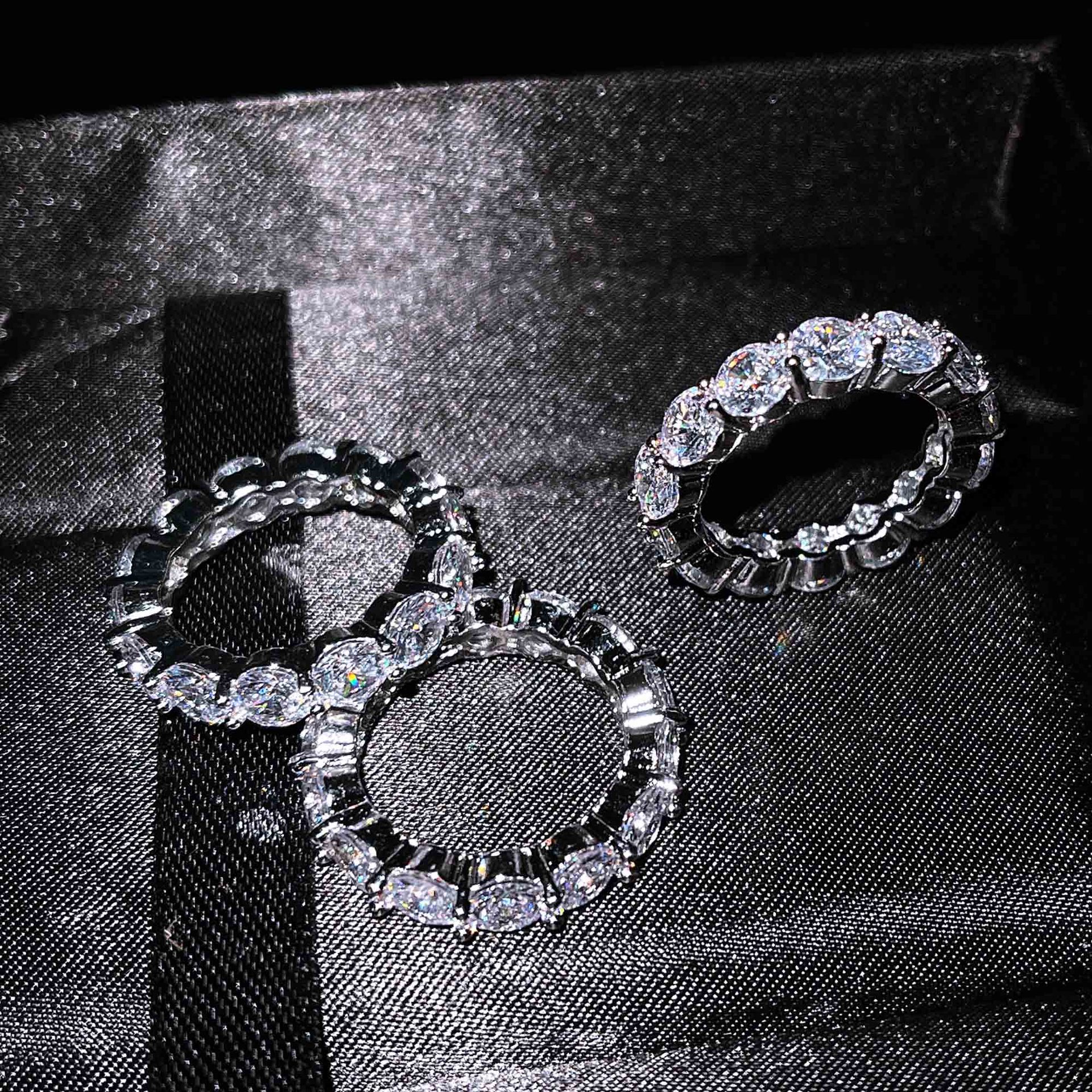 臻荣速卖通爆款圆形满钻单排戒 欧美奢华克拉莫桑钻订婚戒指女