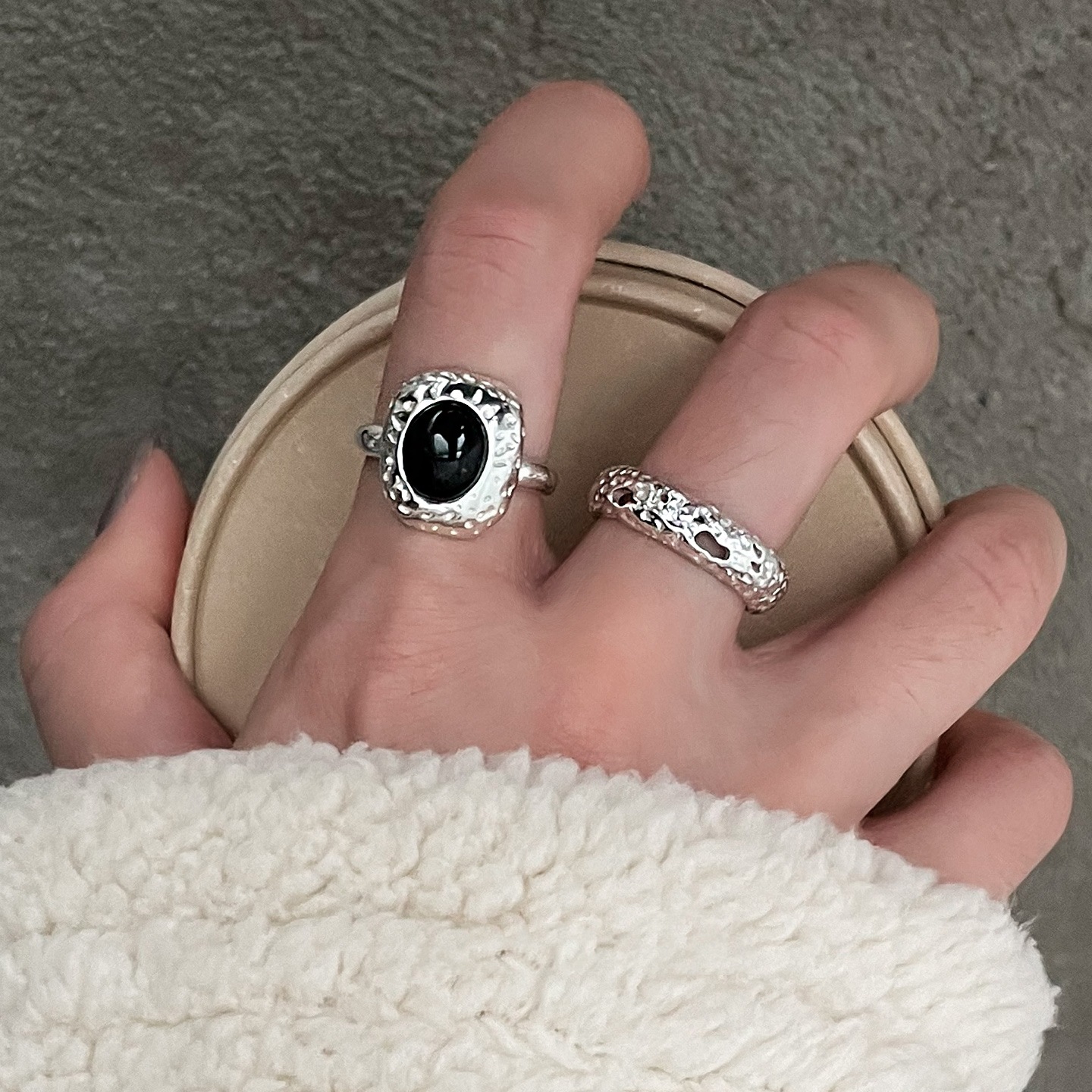 甜酷叠戴黑色戒指女个性时尚气质开口指环小众网红百搭优雅食指戒