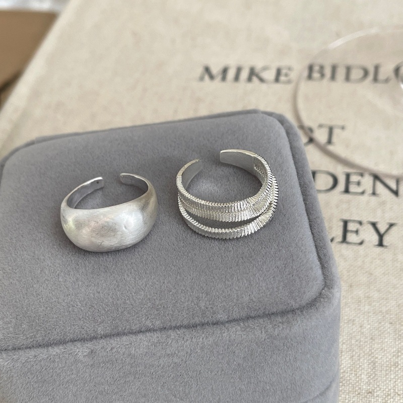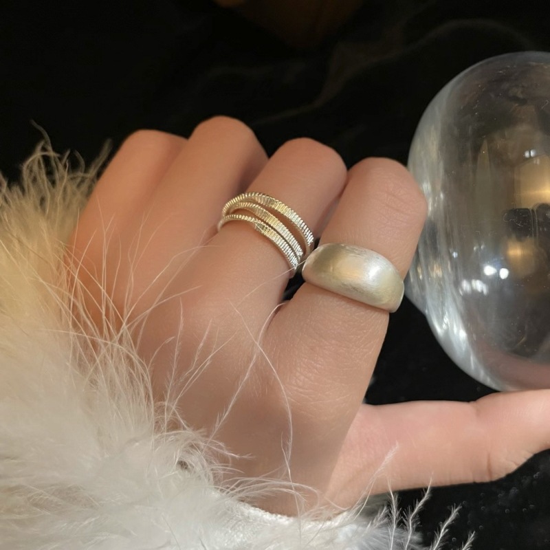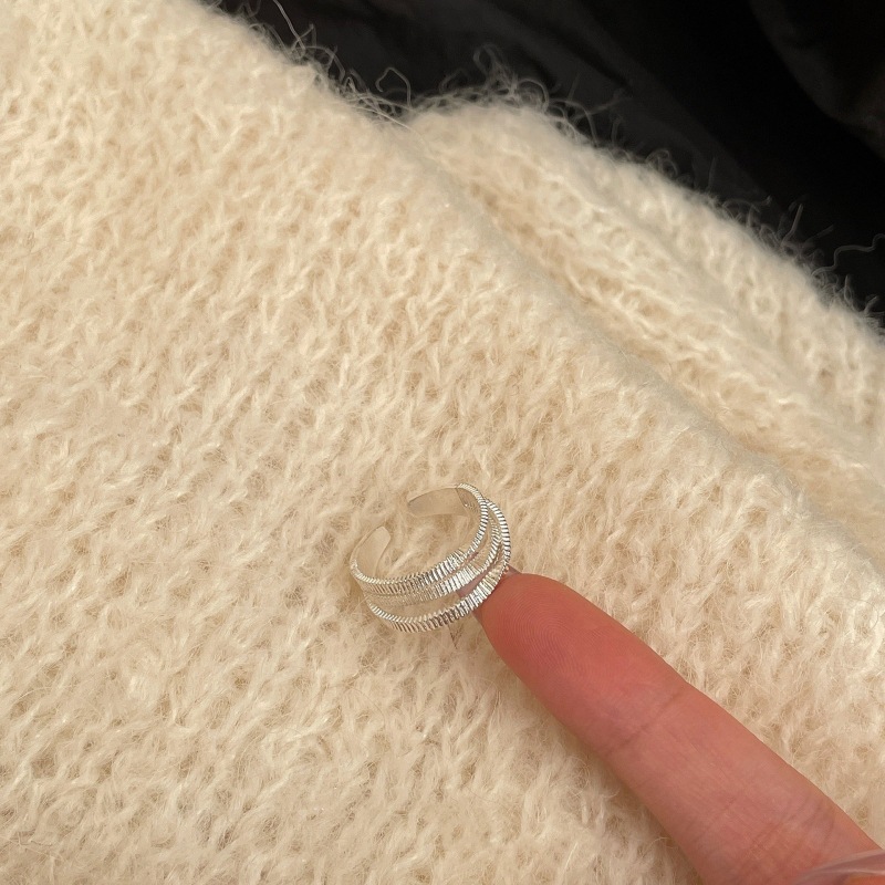 雾面光圈戒指女简约冷淡风独特多层线条S925镀银开口指环食指戒潮