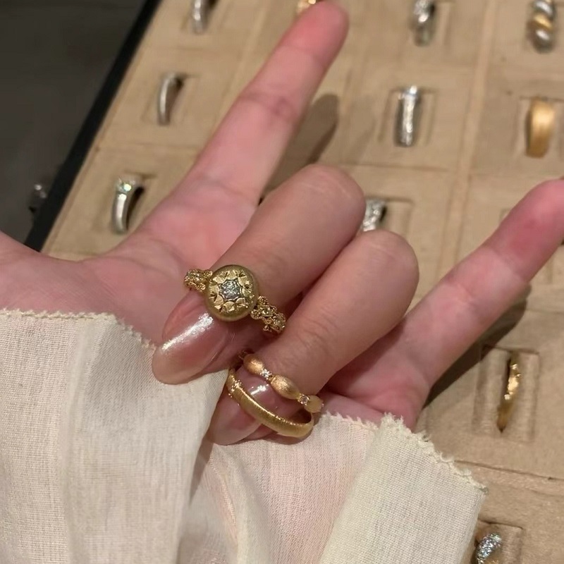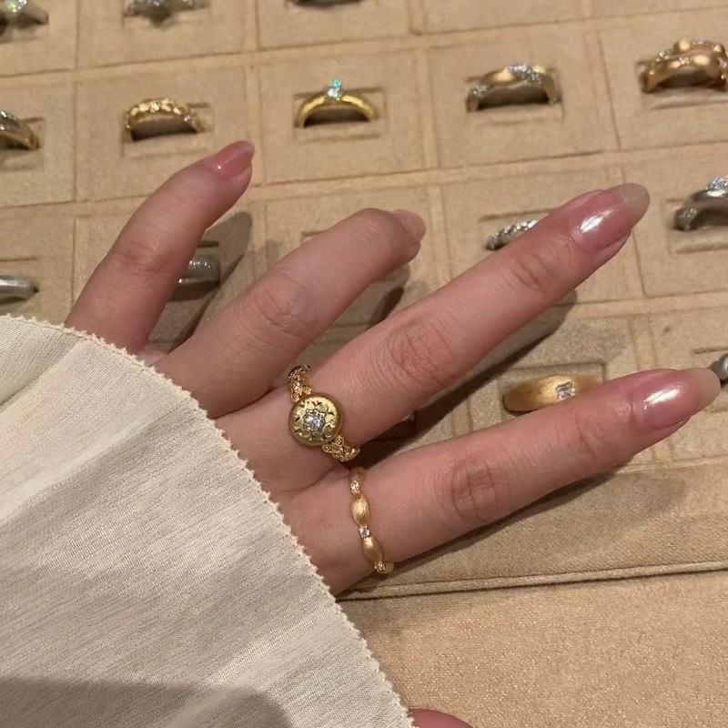 欧美复中古925纯银戒指拉丝轻奢小众高端级设计感气质名媛镶钻环