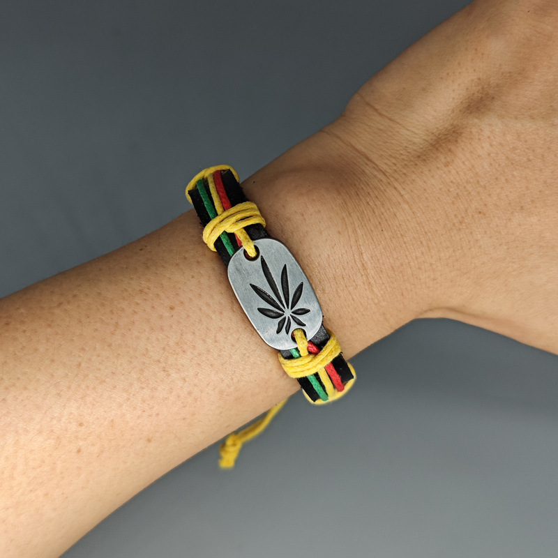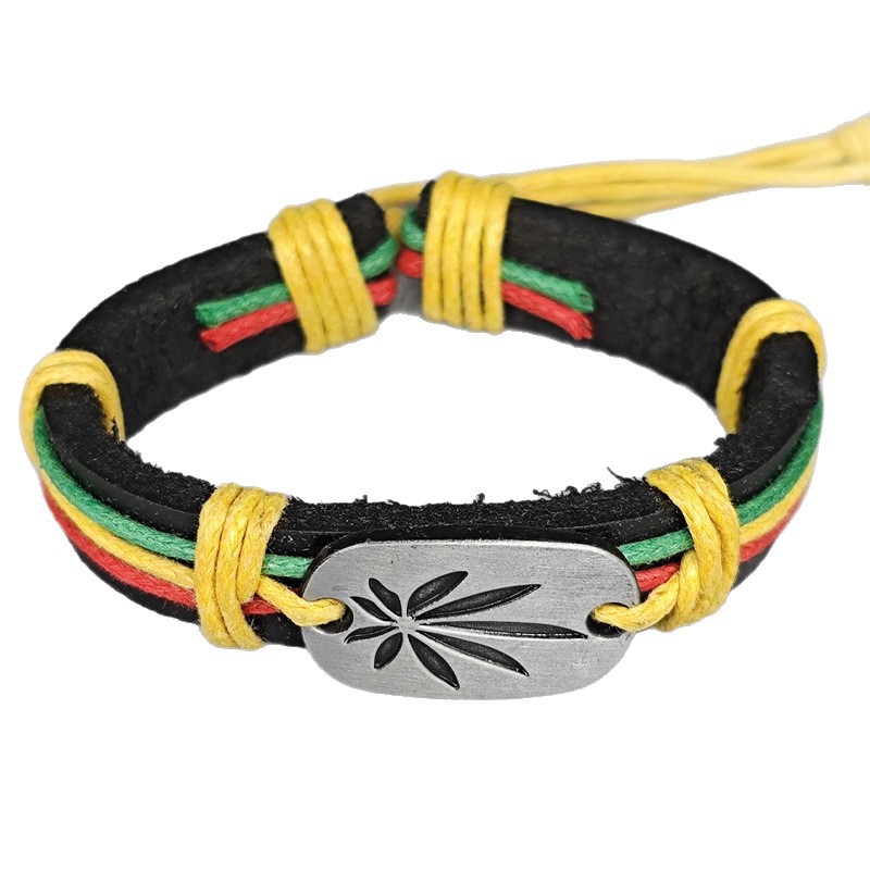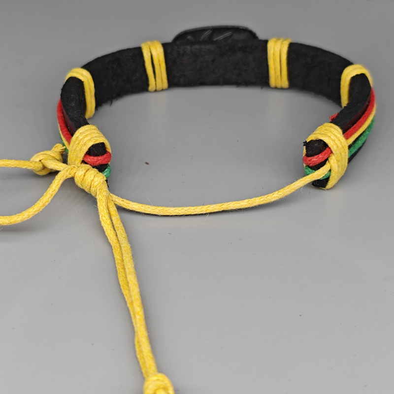 网红牙买加红黄绿亮色皮革手链嘻哈hiphop街舞彩绳编织手环拼