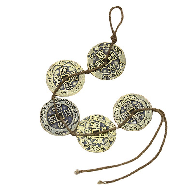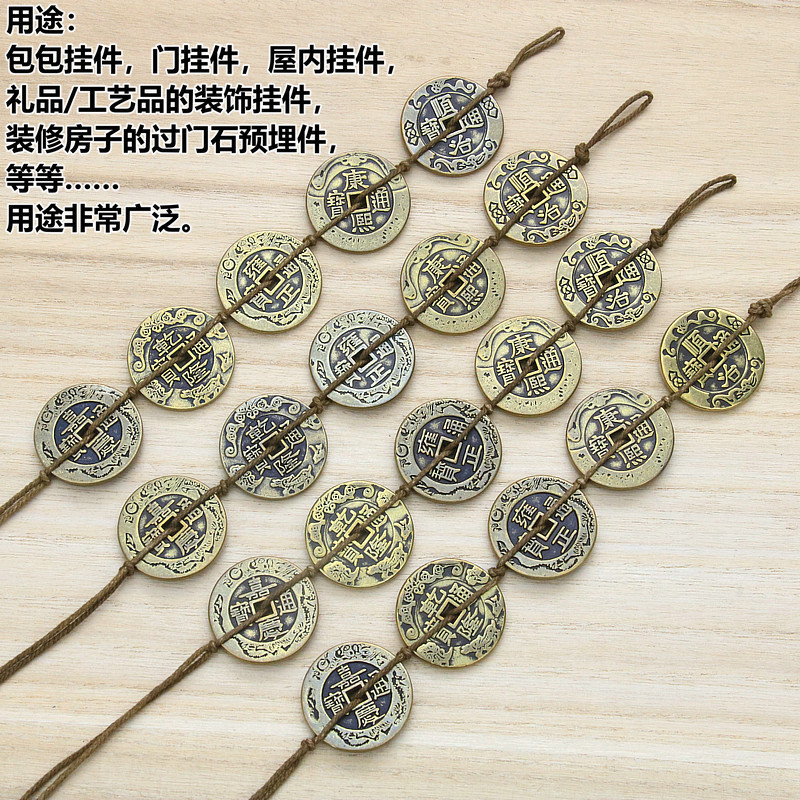 仿古工艺钱币加大加厚款花边3.1cm真铜五帝钱麻绳串挂件五帝铜钱