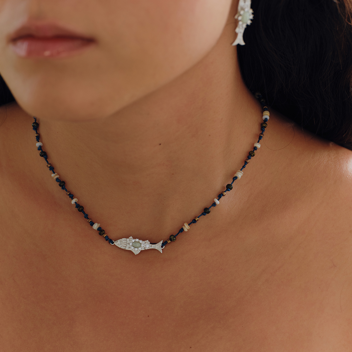 Espiegle【新品】三文鱼与白天的眼睛系列olive宝石绳编织项链