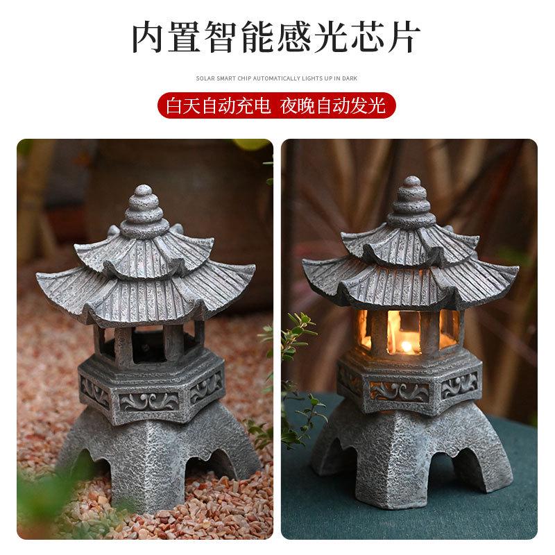 中式禅意石塔庭院装饰摆件太阳能灯室外宫灯花园布置民宿日式阳台