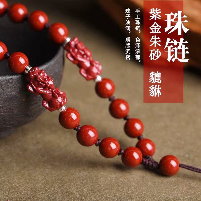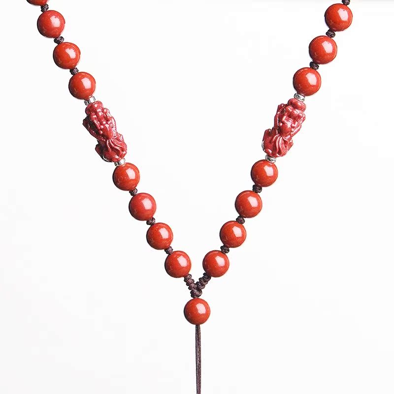 手工编织朱砂项链搭配貔貅吊坠珠链挂绳圆珠民族风情侣饰品项坠链