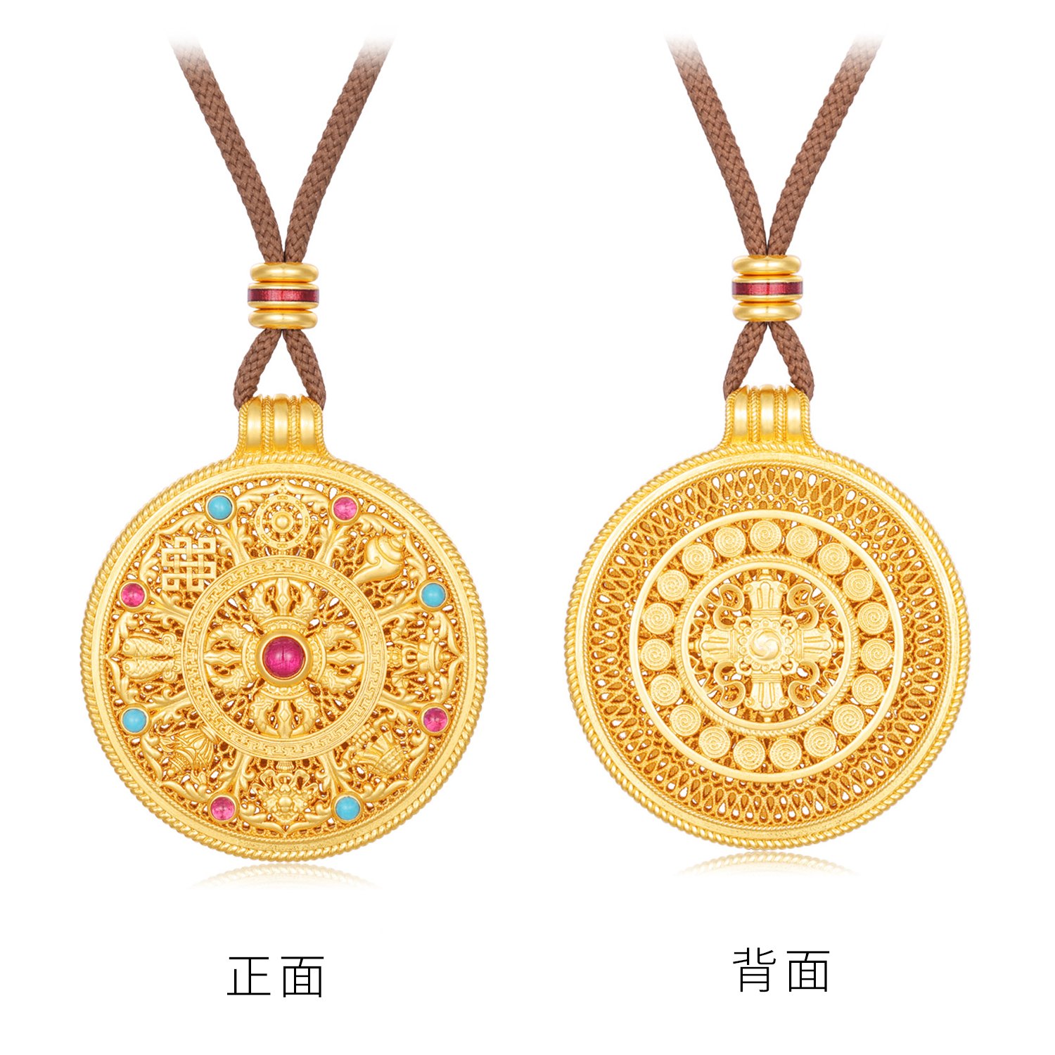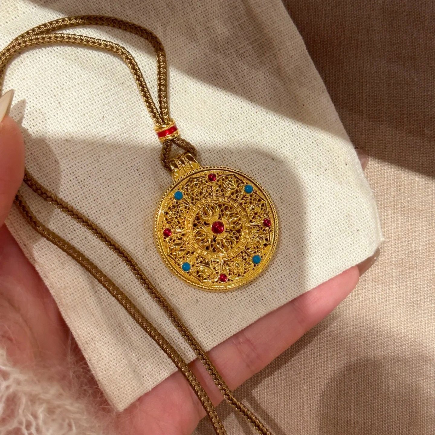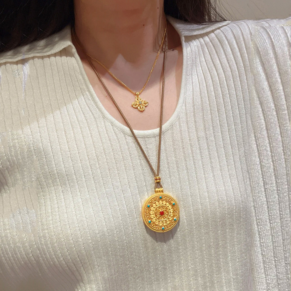 八宝罗盘项链女款纯银轻奢黄财神吊坠编织绳国风新中式毛衣链秋冬