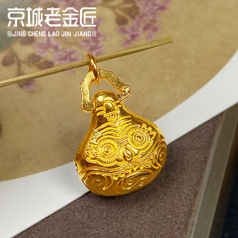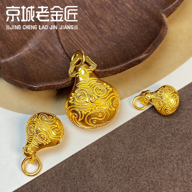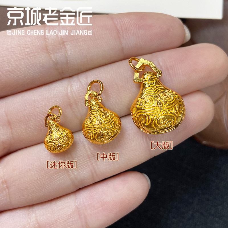 古法黄金手工錾刻驱魔铃吊坠足金999小配件纯金手串配饰送礼男女