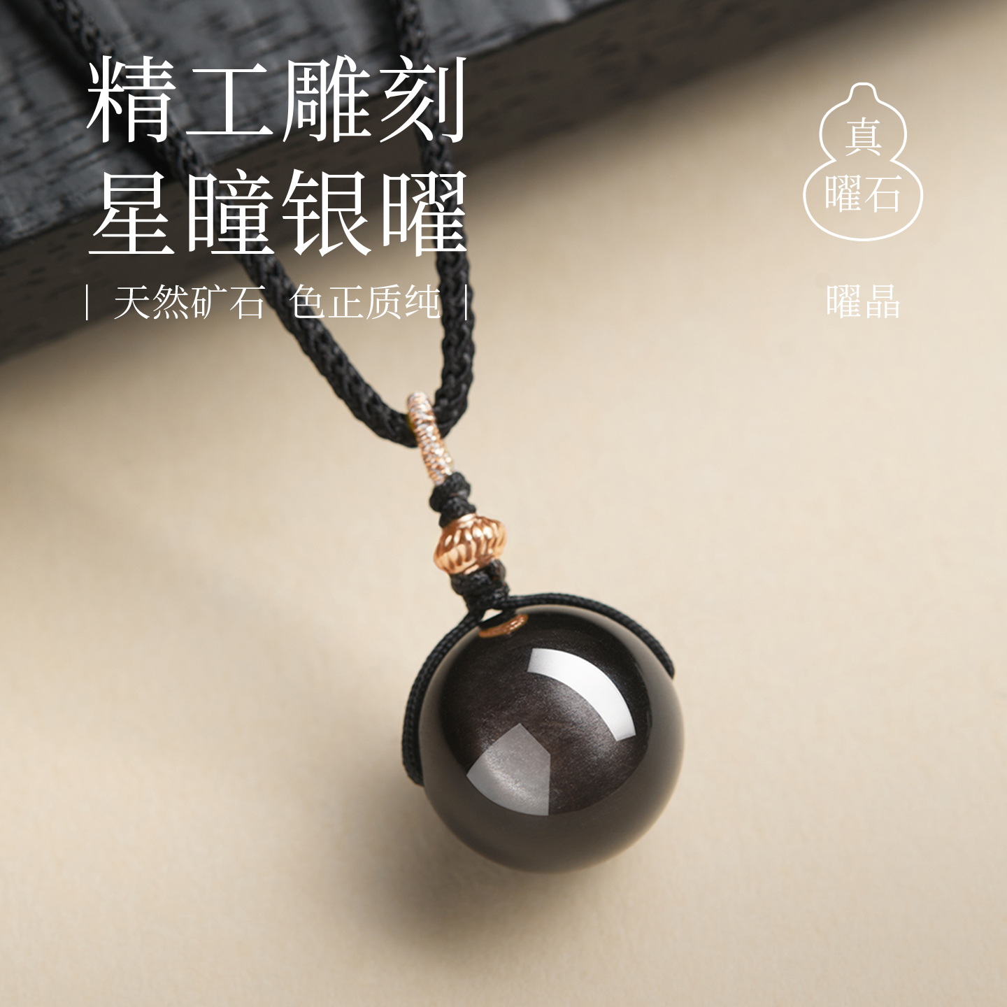 官方旗舰店天然黑曜石吊坠女士银曜石金曜石转运珠项链护身符男款