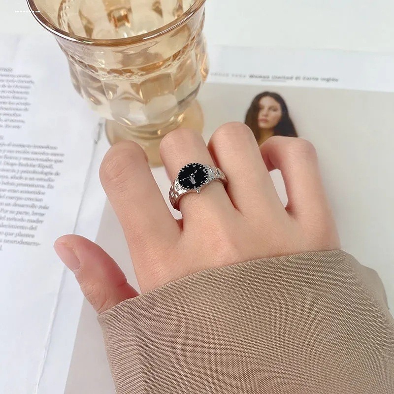 黑色素圈戒指女小众设计感高级轻奢开口食指时尚个性