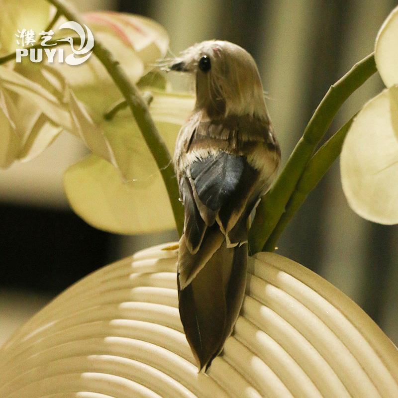 彩色麻雀蜂鸟摆饰手工花鸟庭院摆件仿真羽毛小鸟摆件定制田园摄影