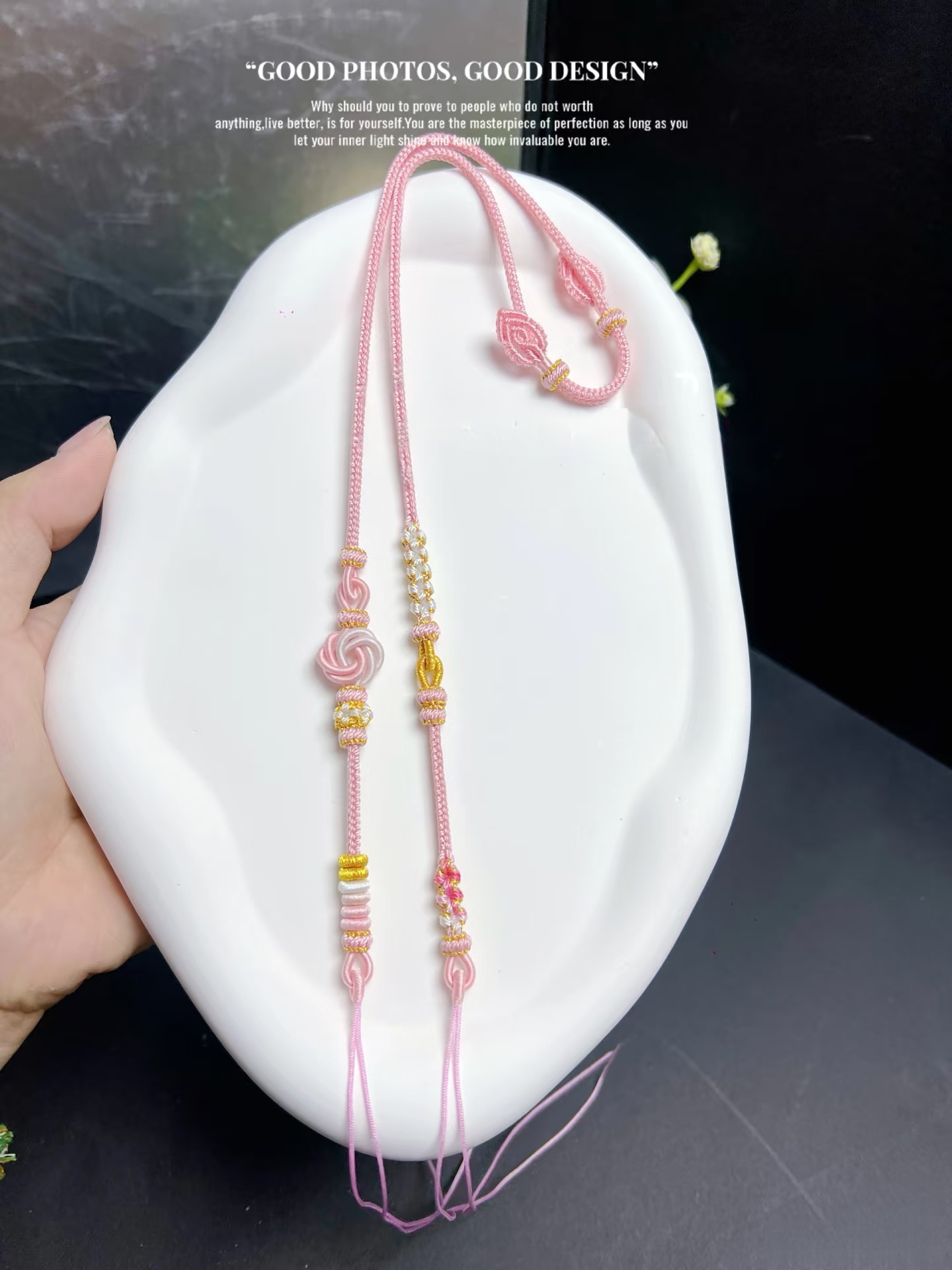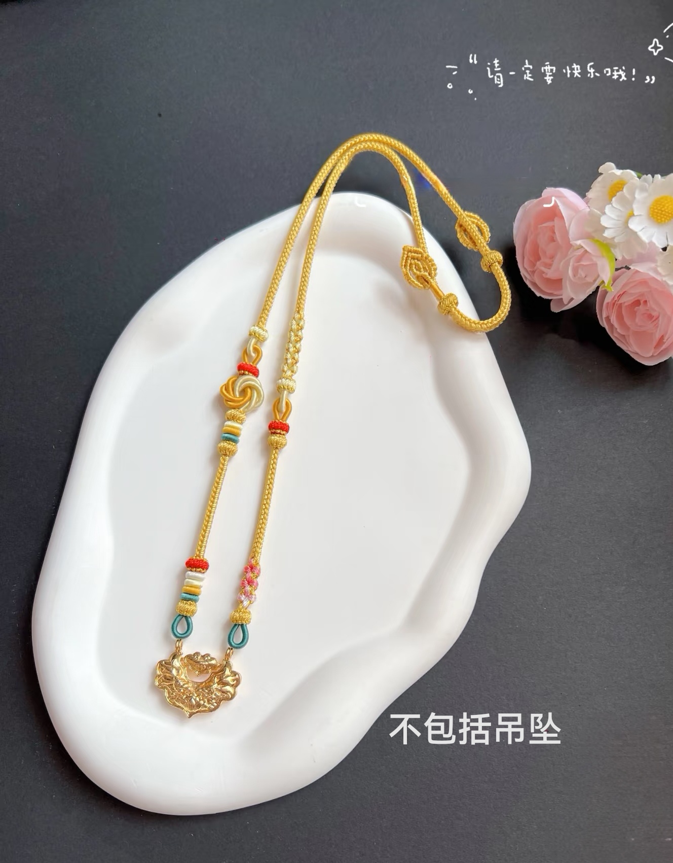 纯手工编织项链绳桃花结挂坠绳双孔黄金锁高货吊坠绳宝宝生日礼