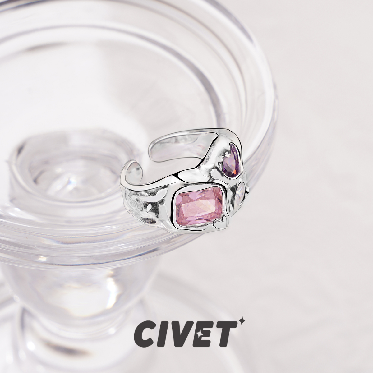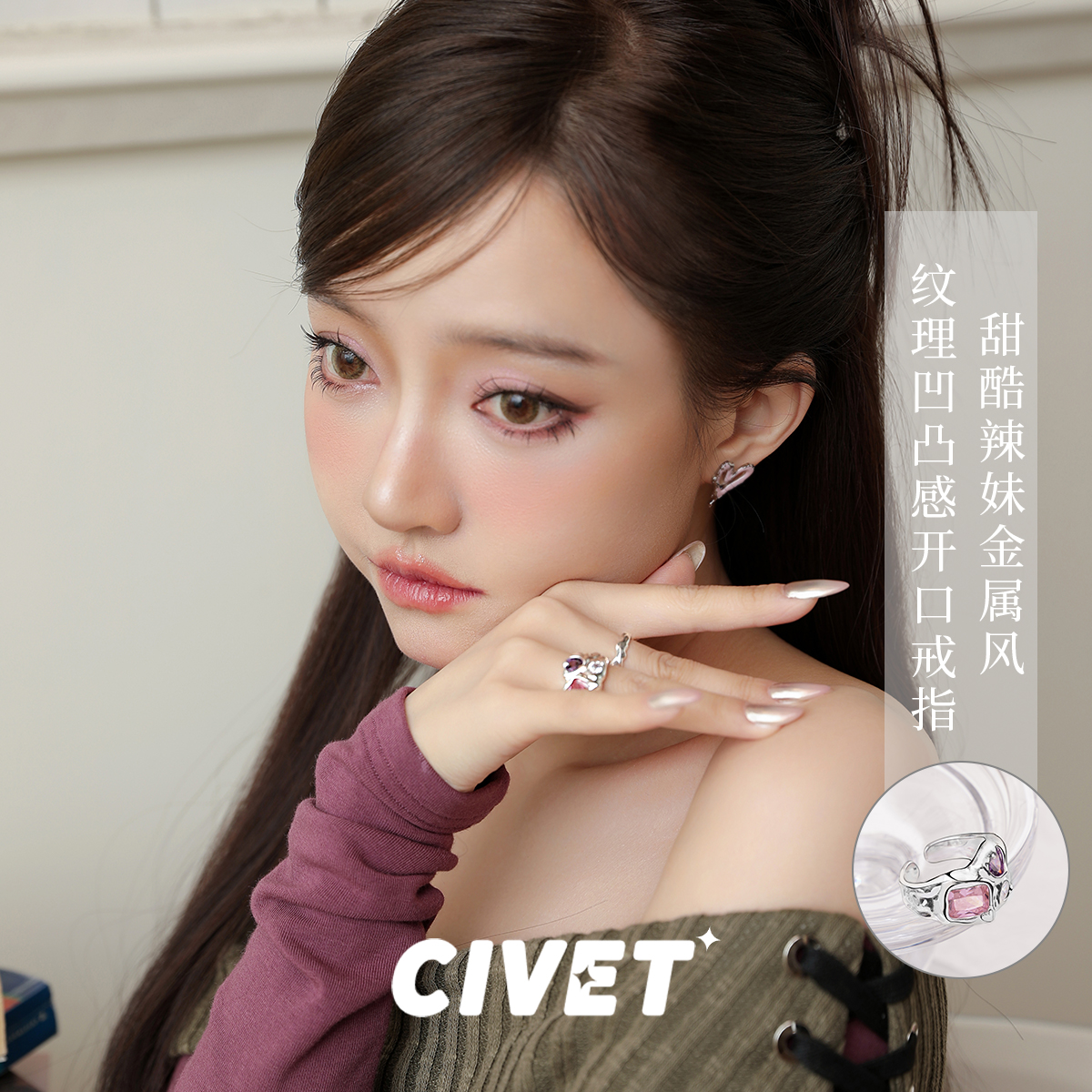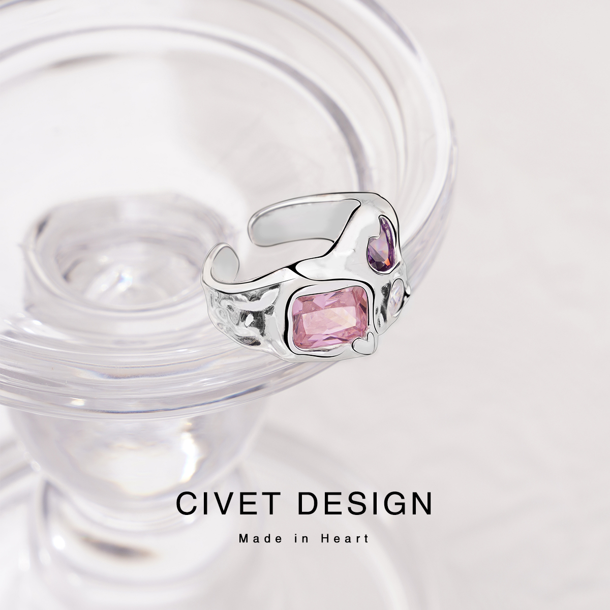 液态金属锆石开口戒指女甜酷辣妹冷淡风小众设计感简约百搭食指戒