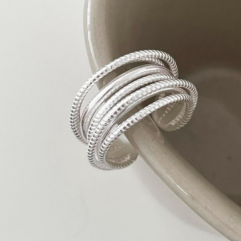 简约冷淡风线条戒指女不规则时尚个性百搭宽边S925镀银开口食指环