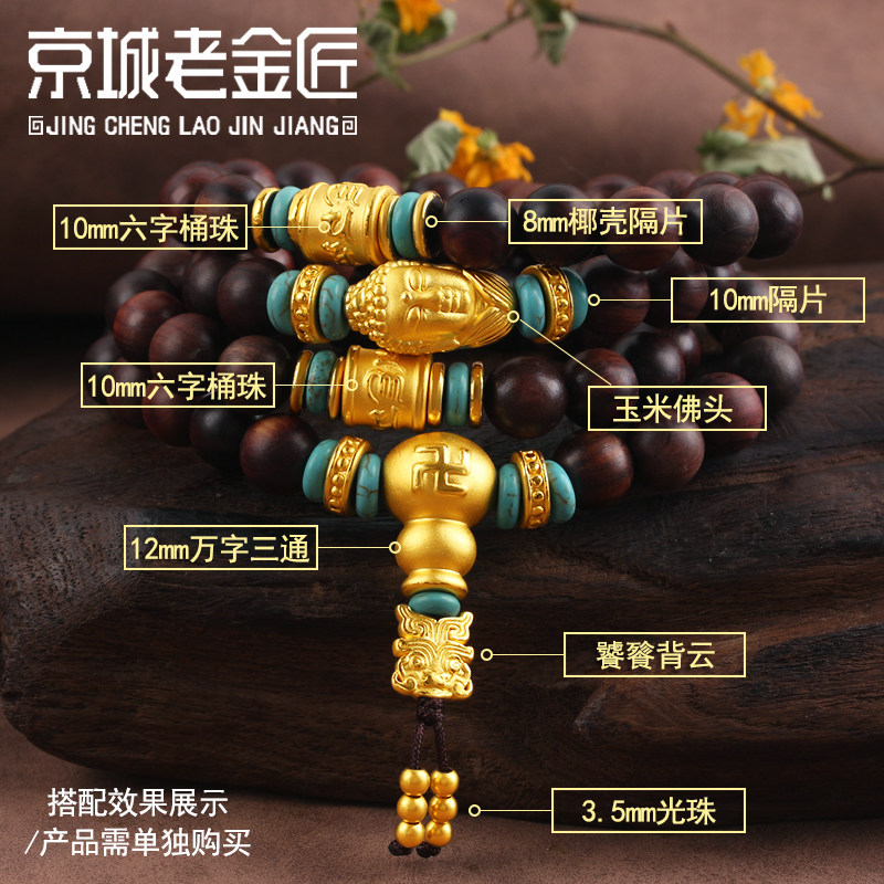 足金999花纹24K黄金隔片纯金垫片珠文玩佛珠手串转运隔珠配件男女