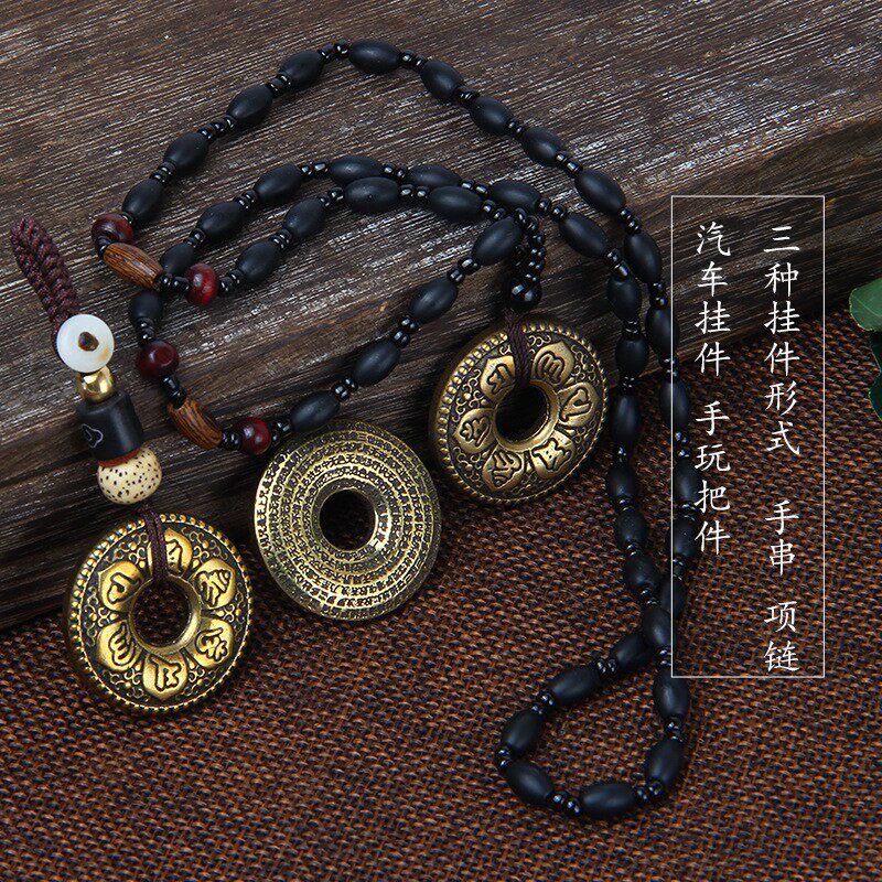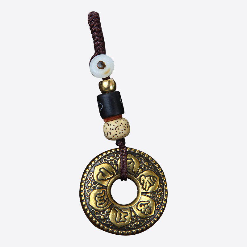 六字真言黄铜扣手作编织绳金刚结菩提串挂坠中国风挂件挂饰项链