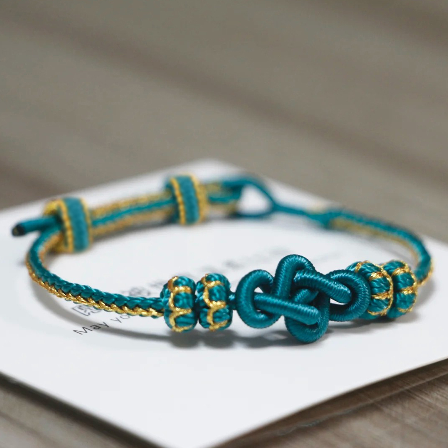如意结diy手绳绿色手工编织绳可穿珠串黄金转运珠可调节编绳手链