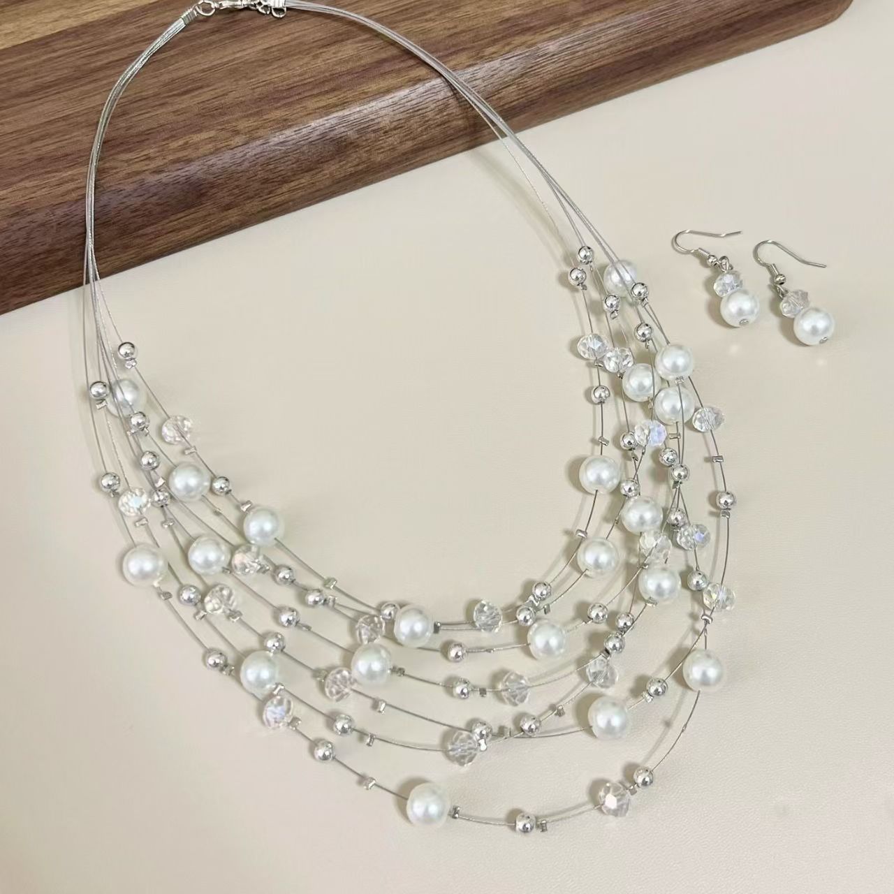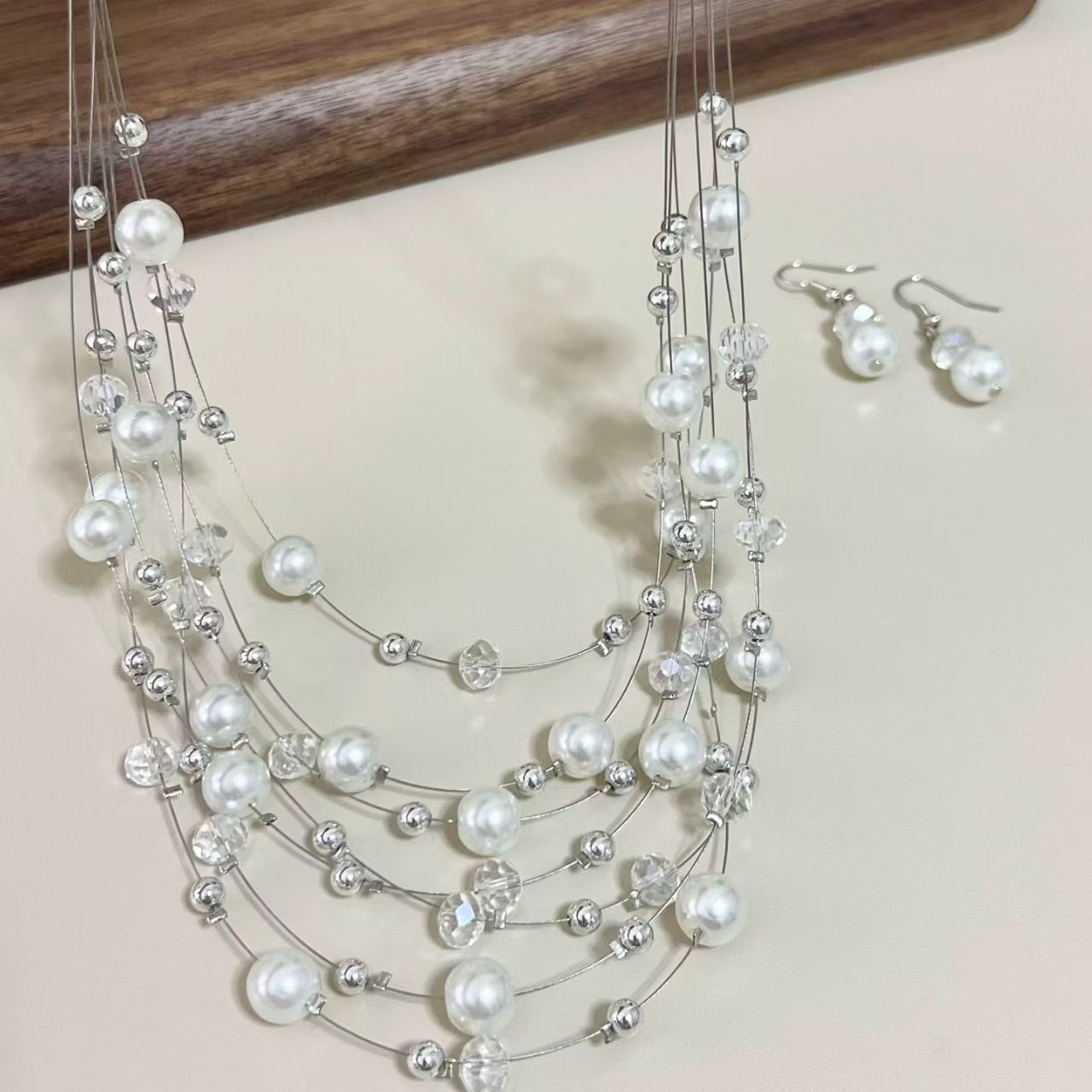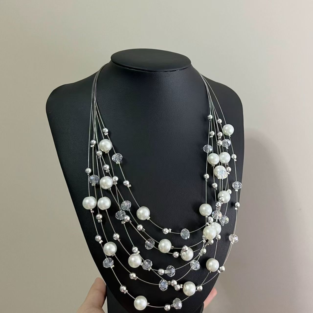 【月华叠梦】富家千金法式多层隐形鱼线串珠项链设计高级晚宴礼服
