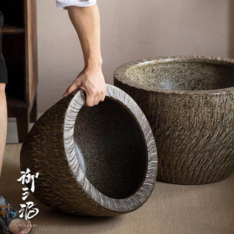 鱼缸落地摆件庭院园林现代陶瓷平口大缸粗陶手工圆坛水缸大花盆
