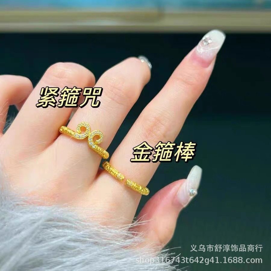 越南沙金祥云金箍棒手镯古法传承悟空镶钻紧箍咒金箍圈戒指女镯子
