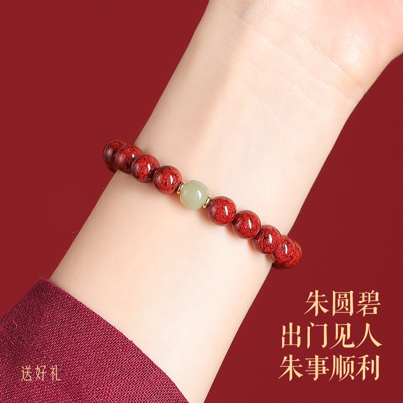 普陀山天然原矿高纯度朱砂手串女正品官方旗舰店和田玉转运珠手链