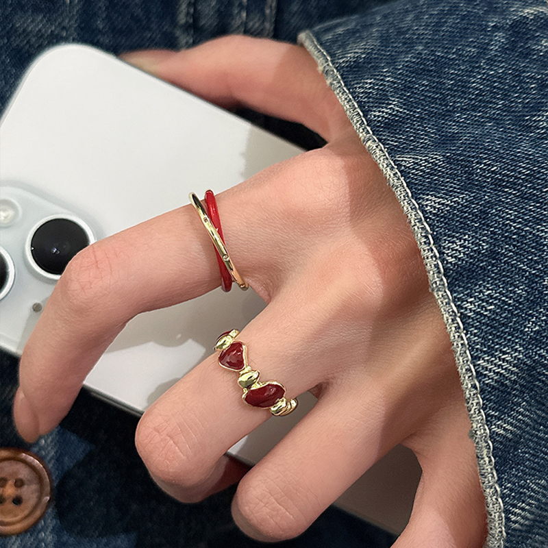 复古安可拉红色滴釉戒指女轻奢高级感开口食指戒2025新款精致指环