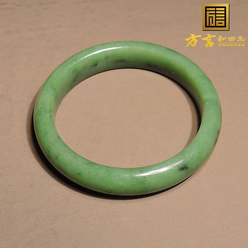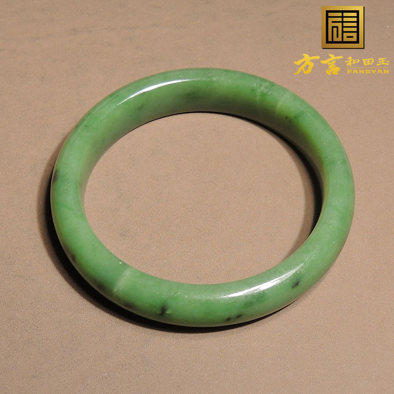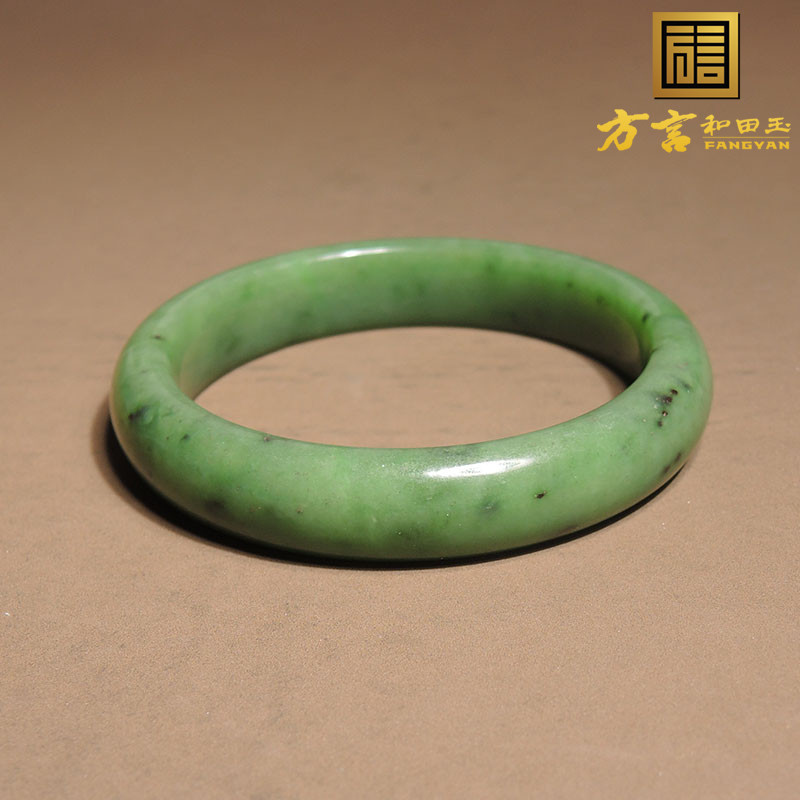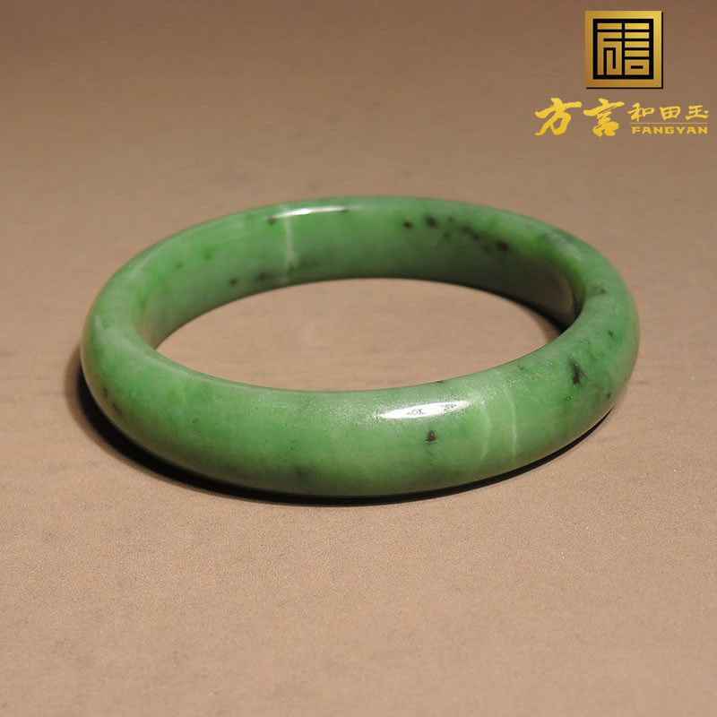 惊呆了方言品牌和田玉佩戴级俄罗斯老料碧玉阳绿卡56mm正装手镯h4