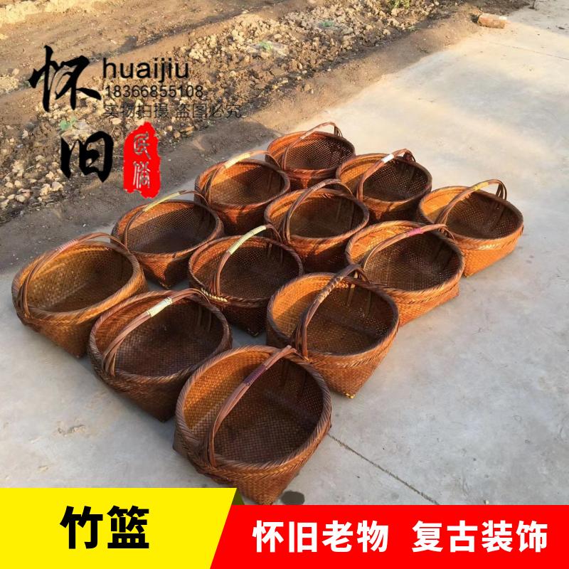 农村民俗老物件手工编织竹篮竹筐提篮米升斗簸箩簸箕覆古怀旧装饰