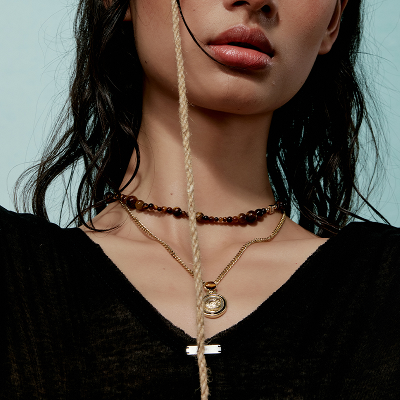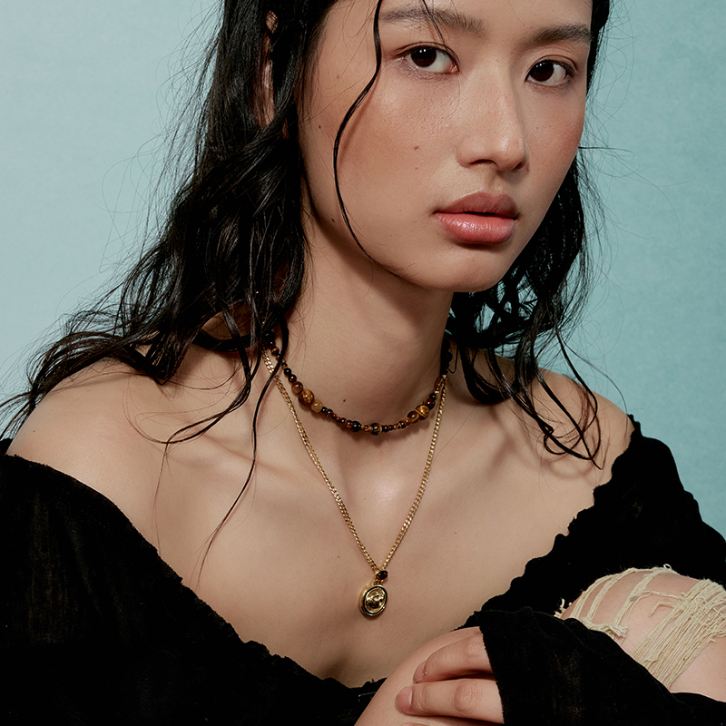 【张桂源同款】GOOGMO项链虎眼石轻奢小众设计锁骨链镀16K金配饰
