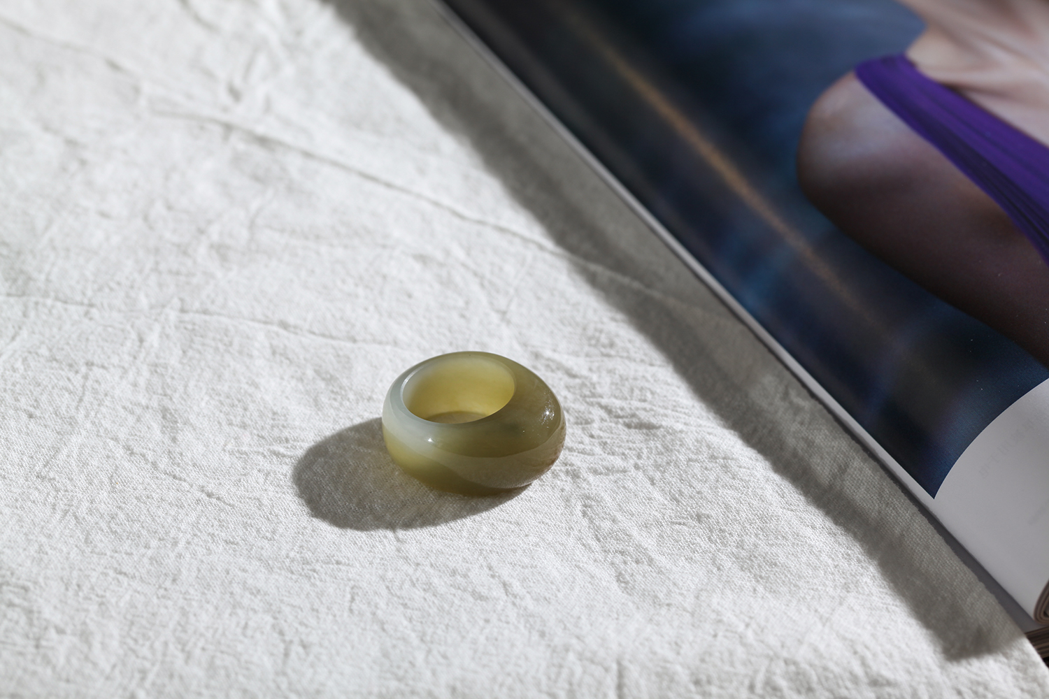 16号戒指 和田玉糖玉俄糖宽条馒头款指环 2779