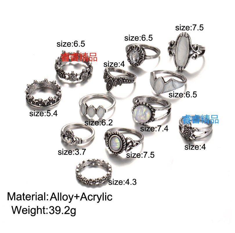 12Pcs Women Vintage Exaggerated Rings fashion Joint Ring set