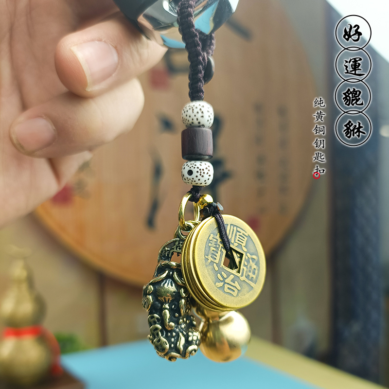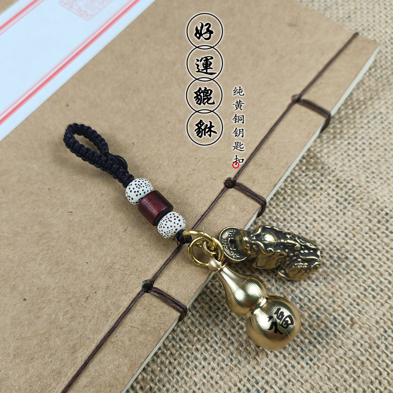 招财纯黄铜葫芦钥匙扣朱砂汽车挂件男女定制高档小饰品五帝钱吊坠