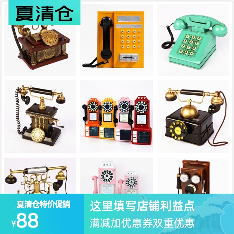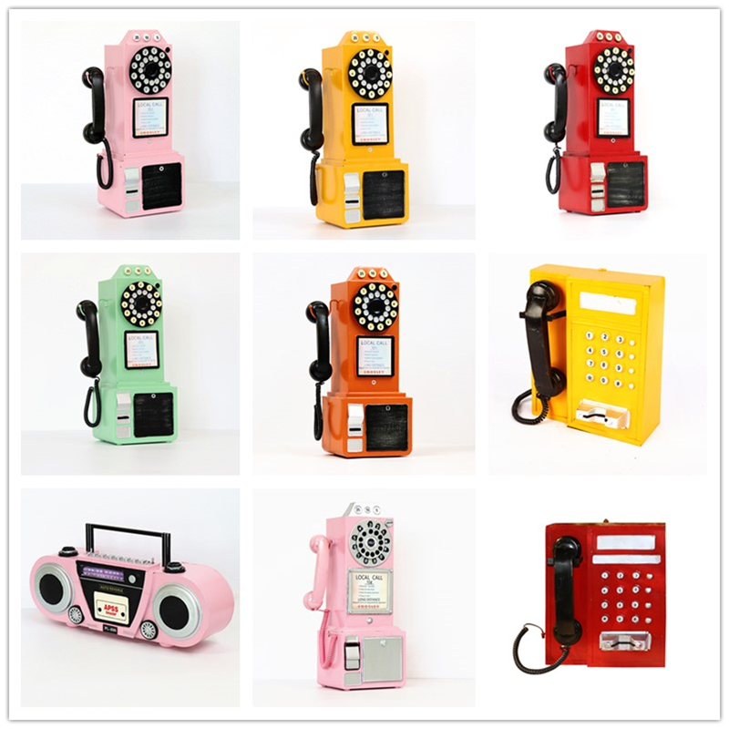 欧式复古怀旧老式铁艺听筒电话机加油机模型摄影道具装饰创意摆件