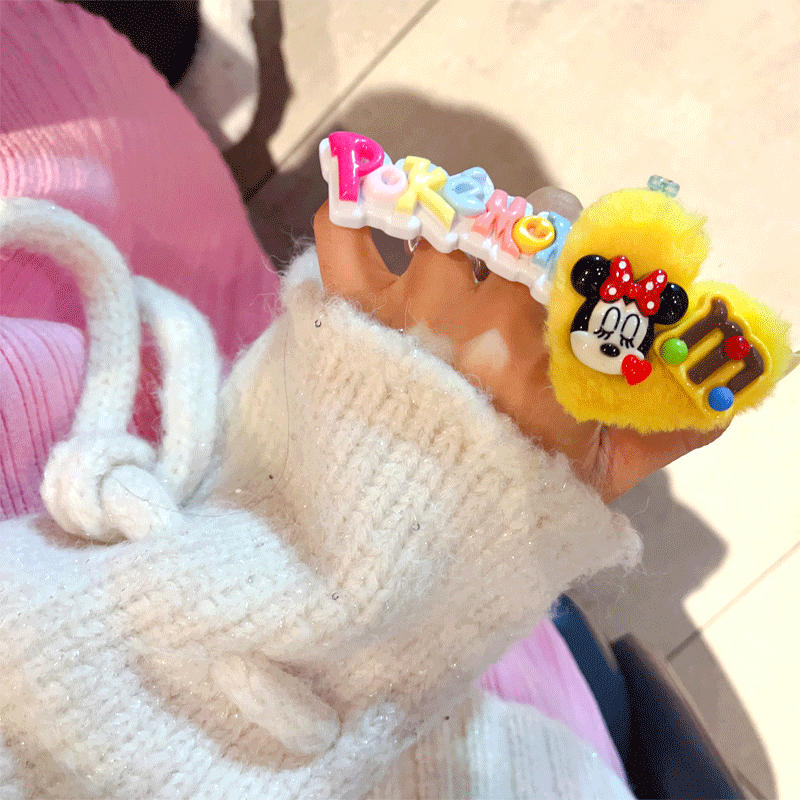 新品秋冬毛绒爱心黄色卡通开口戒指女网红少女心